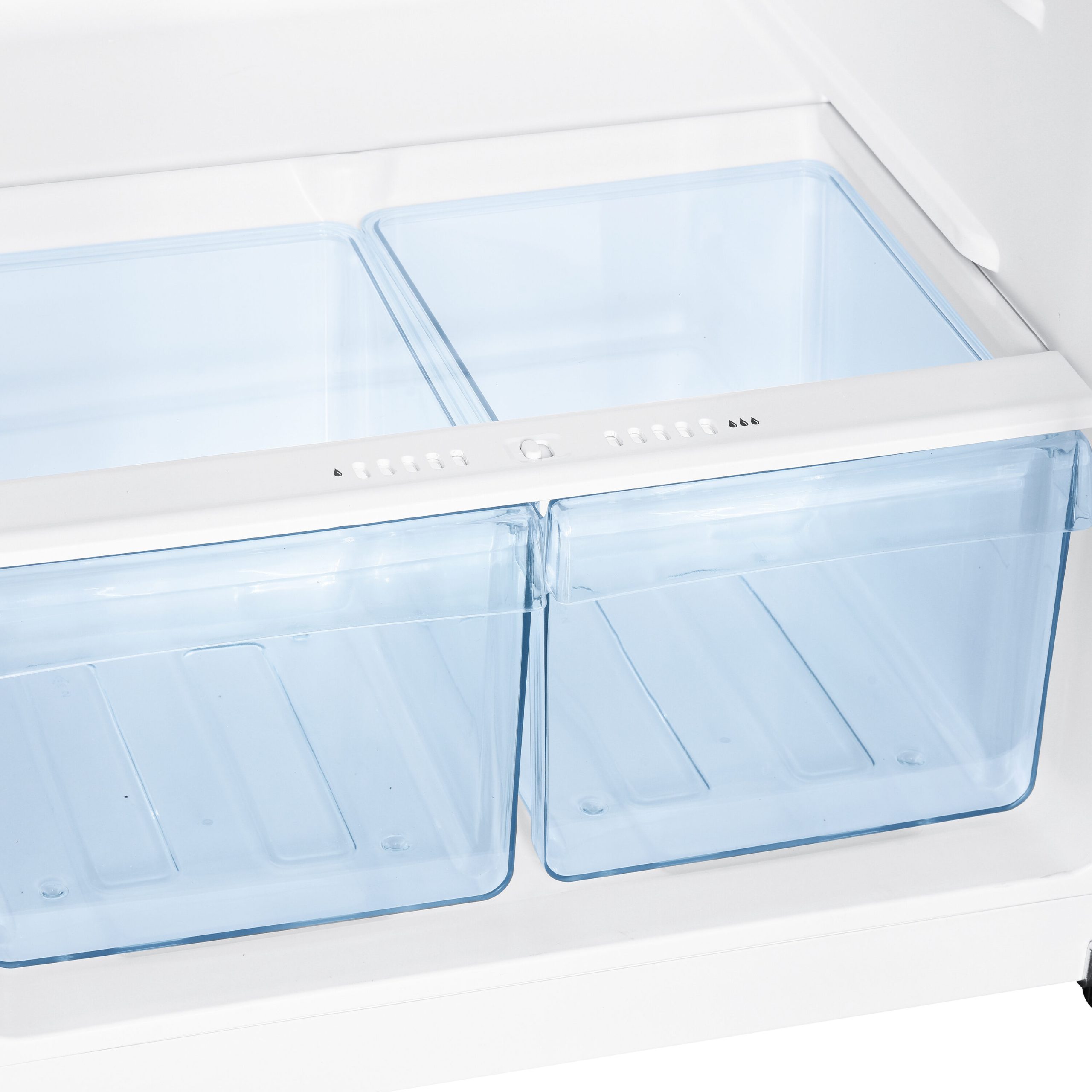 Store your favorite food and beverages in this 10.0 cubic feet refrigerator from Avanti. The perfect apartment size refrigerator, your food, and beverages stay fresh and cold thanks to the frost free defrost system. The top mounted freezer section is the ideal solution when it comes to saving money and storing frozen food in bulk. The full width door bins make storing beverages easy and can accommodate 2 liter and gallon bottles. The two adjustable glass shelves and two clear view storage crispers allow you to arrange salads, fruits, snacks, and other food for easy access throughout the day. Select the right settings for your items with the electronic temperature control.