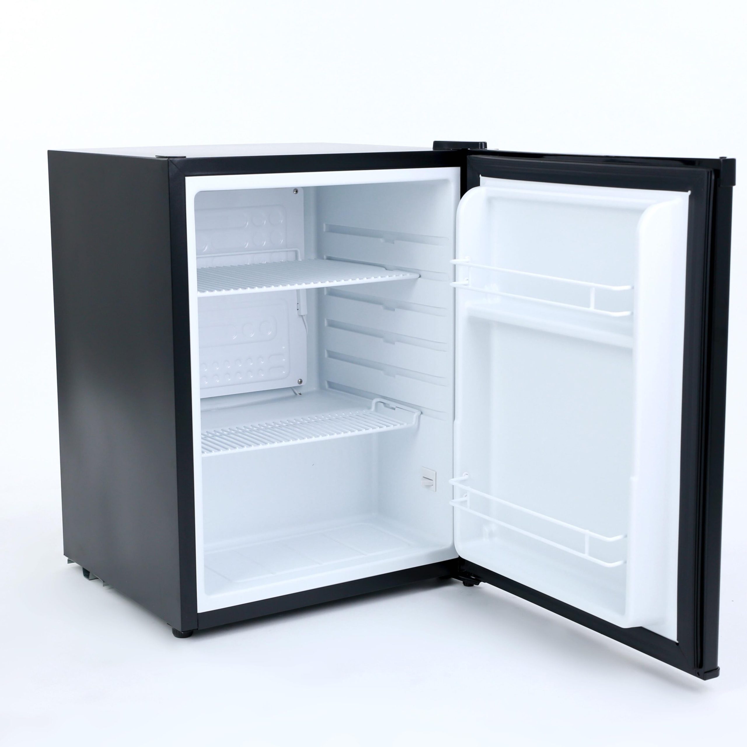Keep your snacks and favorite beverages close by in the compact, 2.2 cubic foot black refrigerator from Avanti. The perfect-sized mini fridge for the hotel, office, dorm, man cave, she shed, bar, bedroom, or anywhere you need a little extra refrigerator space. The built in door shelves offer space for drinks and condiments. Use the adjustable, removable shelving to arrange salads, fruits, snacks, and other foods for easy access throughout the day. This compact fridge features a heavy duty compressor cooling system and automatic defrost, so your foods remain fresh and cold. Keep the right settings selected with the hidden, rear-mounted, full-range temperature control.