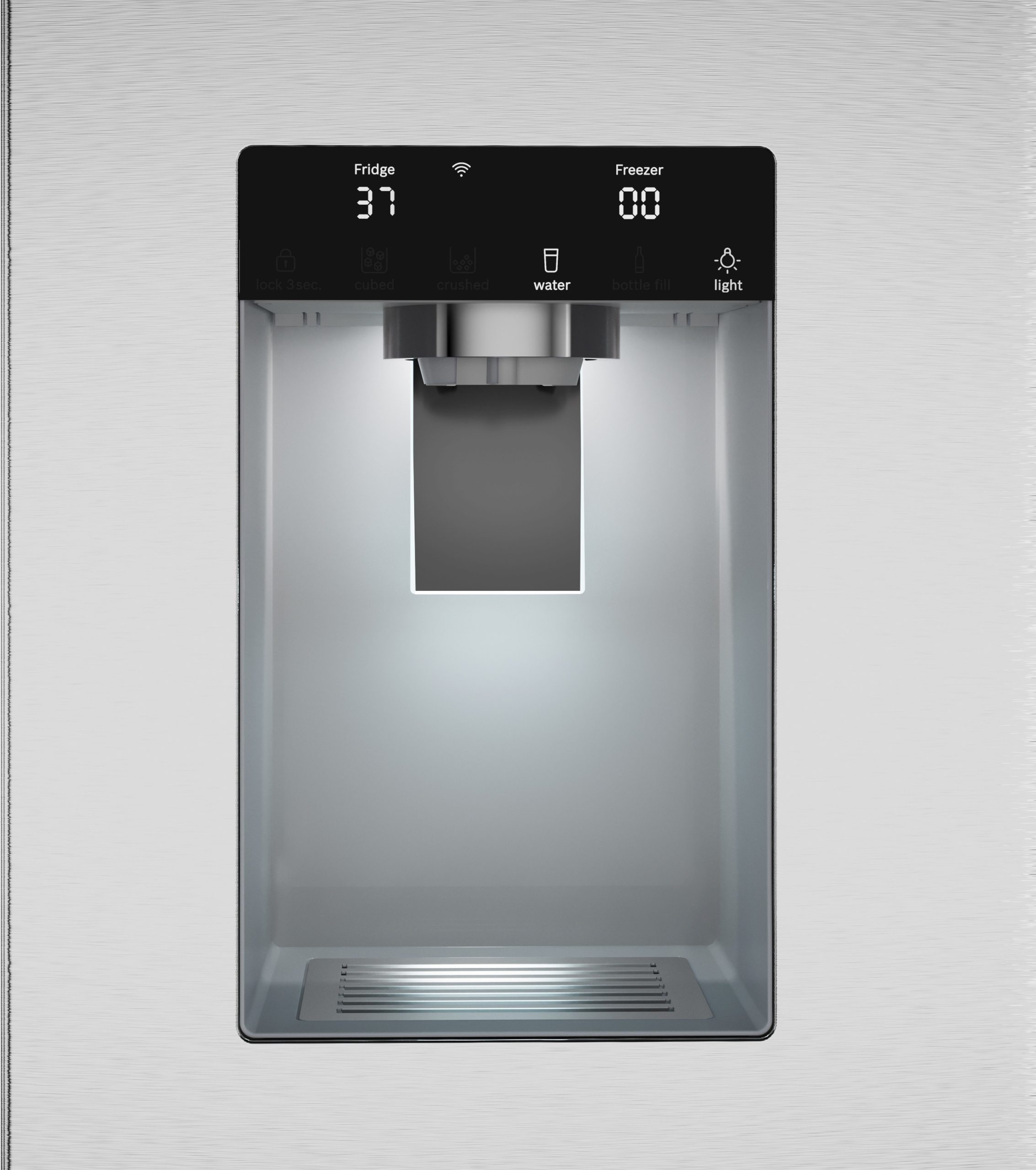 Never run out of ice with the QuickIce Pro System™, the industry’s fastest refrigerator ice maker*, producing 12 lbs. of ice per day. The external ice and water dispenser accomodates oversized drink containers, plus easy water refill with one touch bottle fill. Bosch’s new anti-fingerprint stainless steel prevents smudges and fingerprints. *Based on single ice maker production rates during a 24-hour period, measured per IEC standard, manufacturer user’s manuals and product specifications, for brands identified in US Yipit Top 10 as freestanding French door bottom mount refrigerators.