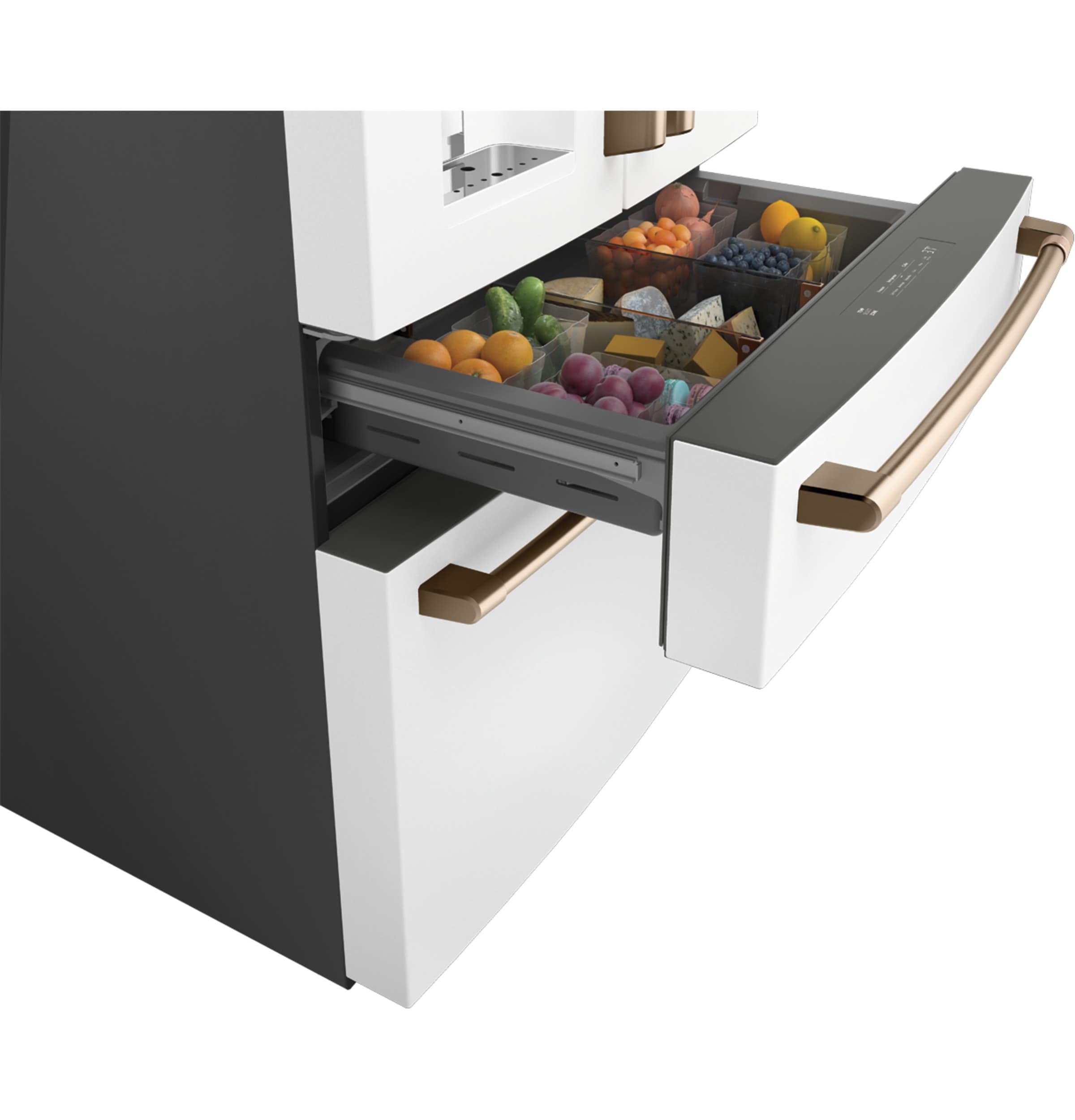 Flatbread Freezer Compartment – use the slim, full-width freezer compartment for flatbread, pizzas and other uniquely shaped frozen items, which is part of a three-level, freezer storage system of sliding shelves and trays