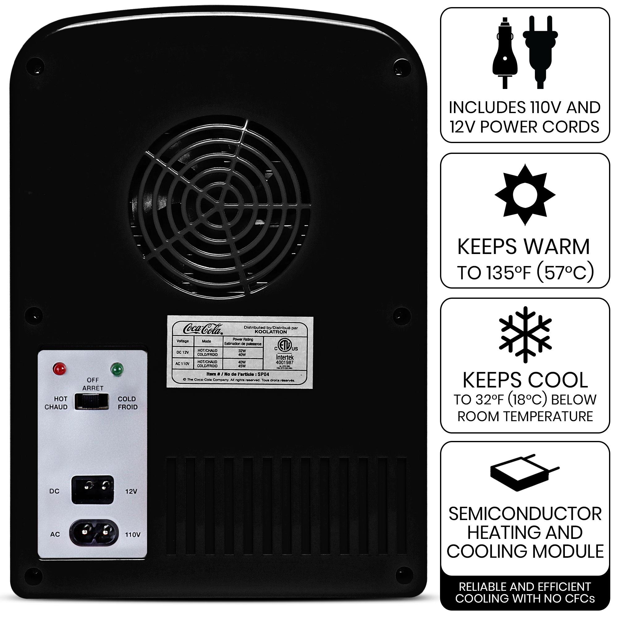 This sleek black mini fridge, featuring the contemporary Coke Zero logo, is a must-have for students or collectors. With efficient thermoelectric technology and AC and DC adapters, this mini fridge lets you chill your favorite soda and snacks or warm your lunch at home or on the road. Its compact size makes it the perfect accessory for your home, office, dorm, or RV. Whether you’re studying late at night or embarking on a road trip adventure, this mini fridge ensures your beverages and snacks are always at the perfect temperature. Upgrade your space with this versatile mini fridge and enjoy the convenience it brings to your daily life.