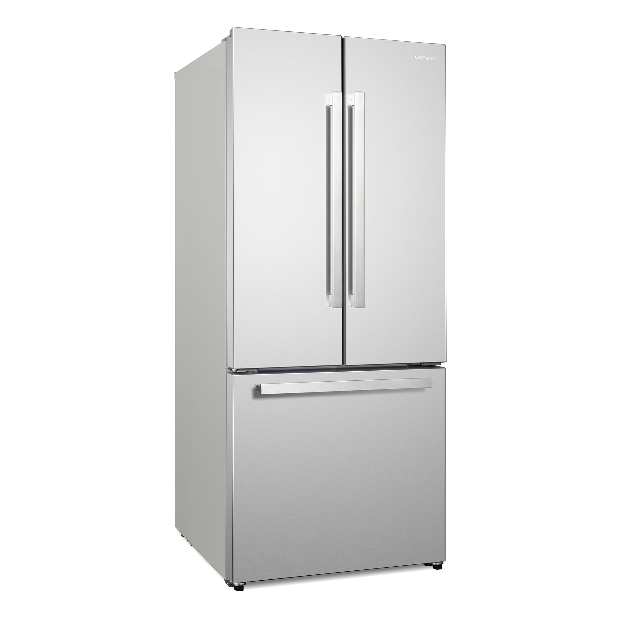 Introducing Cosmo’s COS-RFFV183GHS 17.5 cu. ft. Counter Depth French Door Refrigerator, featuring a sleek, fingerprint-resistant stainless steel finish. This thoughtfully designed refrigerator seamlessly integrates into any kitchen, providing ample storage and essential features to keep your food fresh and organized. It boasts a spacious bottom freezer with a removable ice bin for easy access. Adjustable shelves with fully enclosed crisper drawers offer valuable storage options, accommodating a wide range of foods. Valuable features such as energy-efficient LED lighting and a hidden hinge enhance its adaptability to any kitchen space. With advanced preservation technology, this refrigerator ensures optimal storage temperatures for your convenience, making it a perfect addition to your home.