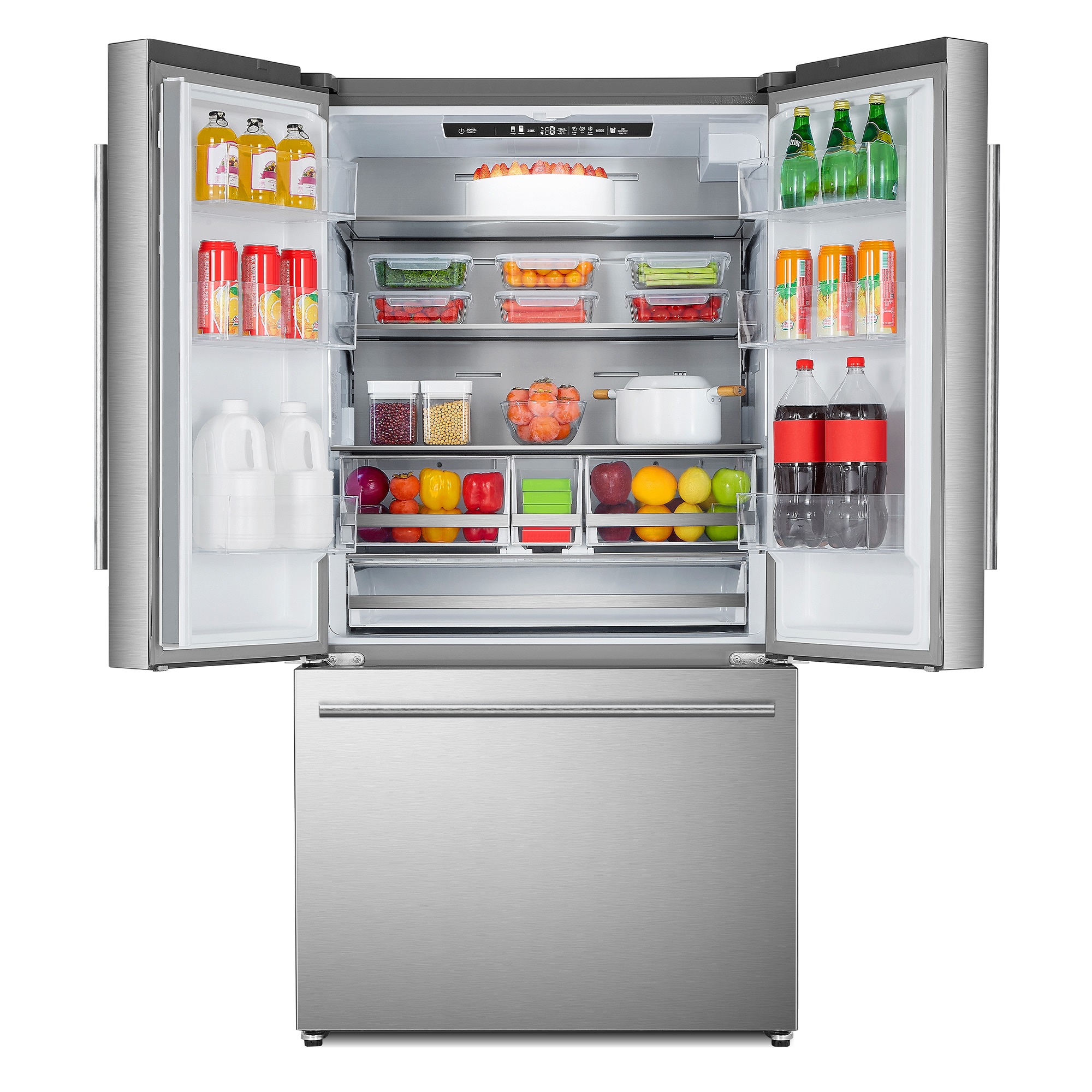 Cosmo’s Counter Depth French Door Refrigerator with 22 cu. ft. capacity has a sleek and smooth exterior design with impressive innovative features. Including a spacious bottom-freezer, this refrigerator offers organizational versatility for effortless storage and access to a wide range of foods from meats to fresh produce. Fully extendable freezer drawer, adjustable shelves and energy-efficient LED lights provide a clear view of all your fresh food. Our advanced preservation technology ensures you experience convenience on a whole new level with efficient storage temperatures for maintaining fresher fruit, vegetables, fish, meat and dairy products.