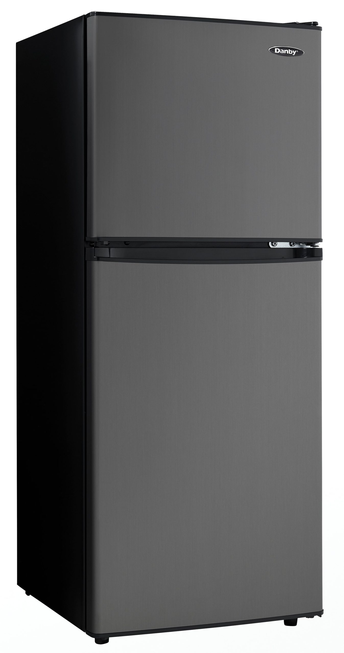 Danby’s 4.7 cu. ft. dual-door compact refrigerator/freezer is great for rec-rooms, offices, and more. This model offers a 3.2 cu. ft. cooling capacity and 1.5 cu. ft. freezing capacity with separate reversible doors for either left or right-handed opening. The mechanical thermostat ensures that your food is always stored at the correct temperature, and the freezer incorporates a manual defrosting system. Coveted features include bright interior lighting, 2 full-width glass shelves, a see-through vegetable crisper with a glass cover, and integrated door shelving for tall bottles.