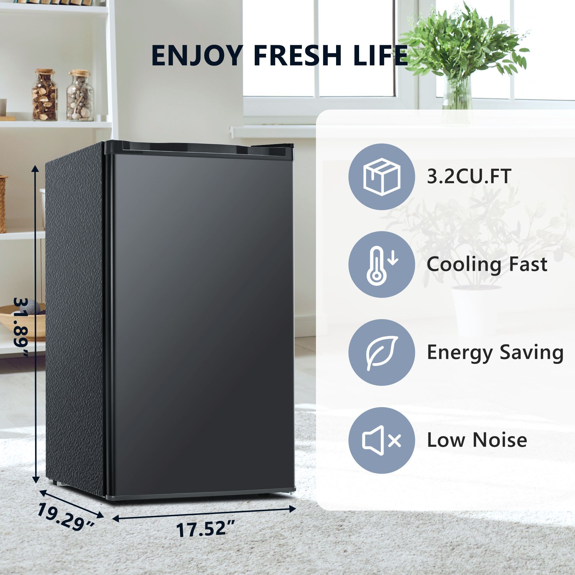 Spacious capacity: with 32 cu ft of storage space, it accommodates a variety of items, from snacks to beverages