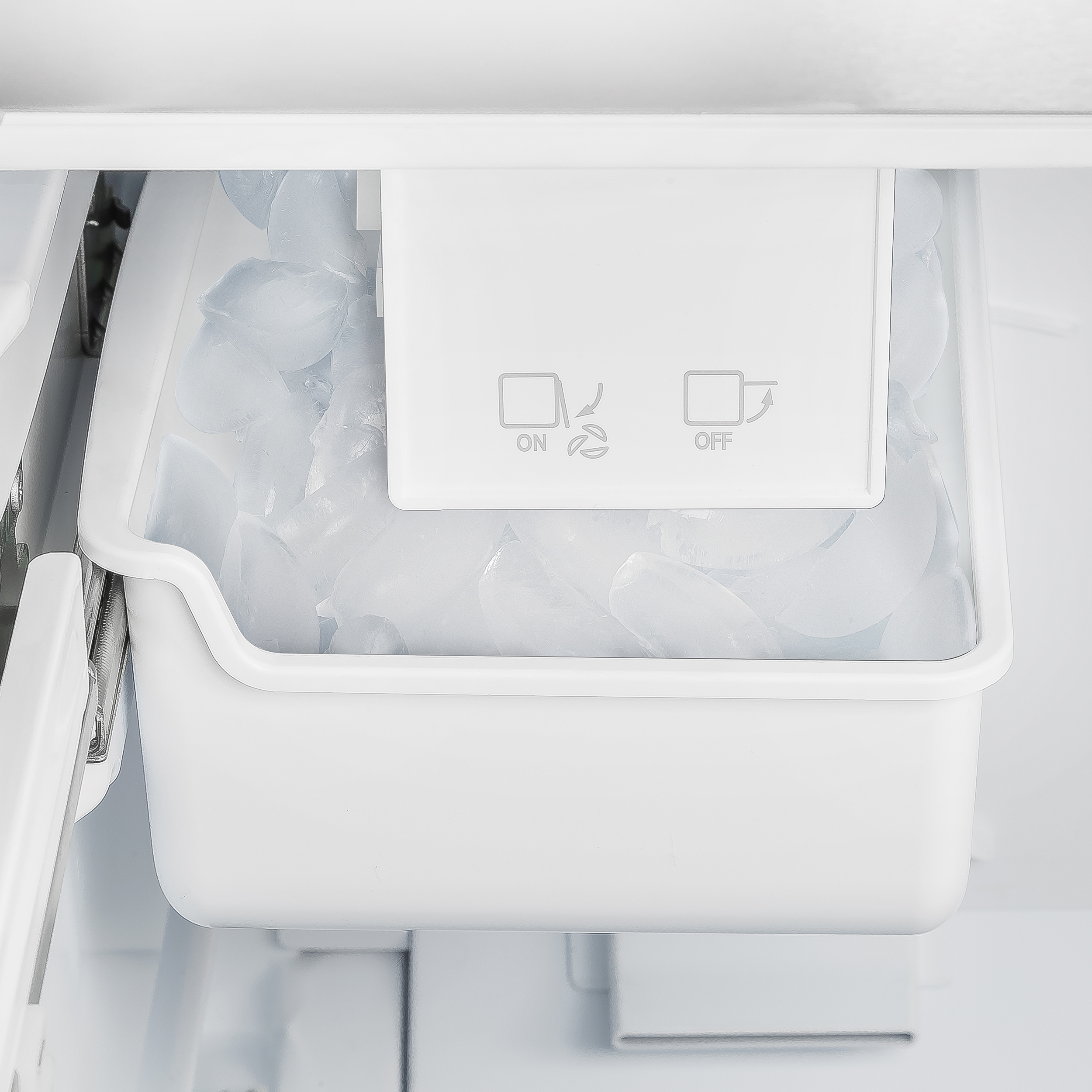 The freezer compartment features 1 pull-out drawer with 2 full-width storage compartments.