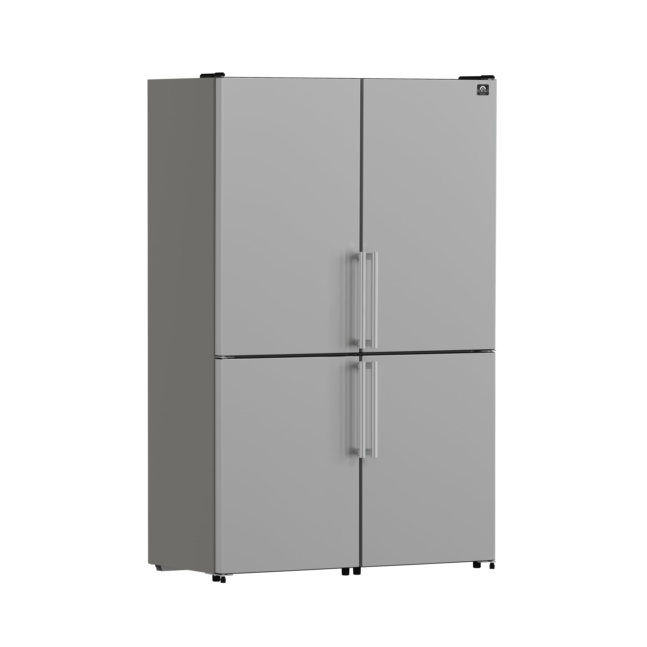 The Forno Guardia 46.8 Inch side-by-side refrigerator combines two 23.4 Inch Guardia units, creating a spacious design perfect for kitchens of any size. This arrangement offers ample storage capacity and versatility, catering to diverse storage needs. Its sleek stainless steel appearance ensures seamless integration into your kitchen decor. With a doubled total storage capacity of 21.6 cu.ft., the fresh food compartment provides an impressive 14.8 cu.ft. of space, now equipped with six glass shelves, two deli drawers, and two humidity control crisper drawers. Meanwhile, the freezer compartment now offers 6.8 cu.ft. of storage, boasting six large drawer baskets that are easy to remove and clean, providing ample storage for frozen goods. Notably, the freezer also includes a Super Freeze function, maintaining groceries at the ideal temperature while conserving energy effectively. Furthermore, the appliance remains ENERGY STAR Certified for efficiency, and its high-efficiency LED lighting continues to reduce food spoilage. Enjoy top-notch quality and performance with Forno’s spacious and reliable appliances, enhancing your kitchen experience without compromising on efficiency.