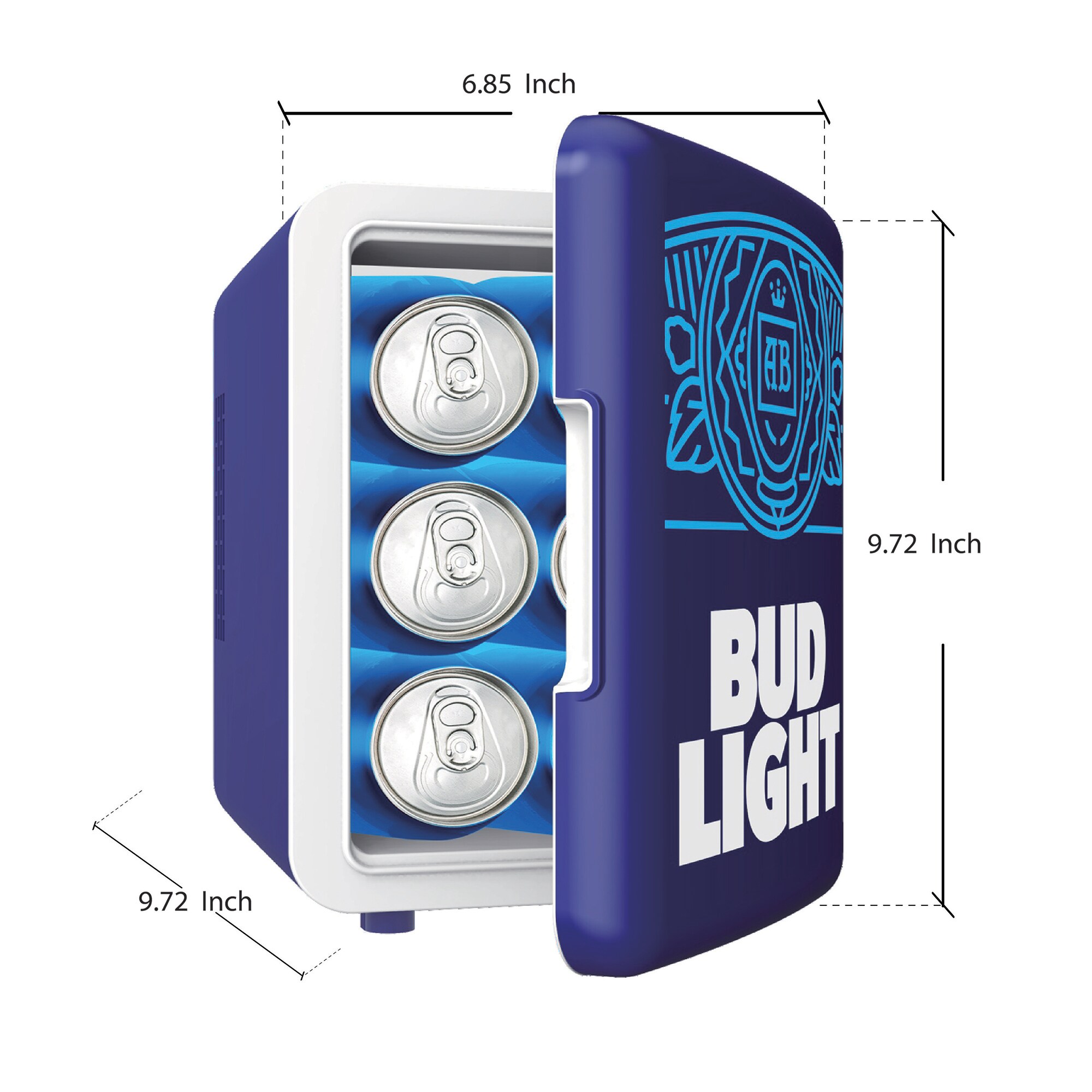 Bud light mini fridge store snacks, beverages, and skin care products