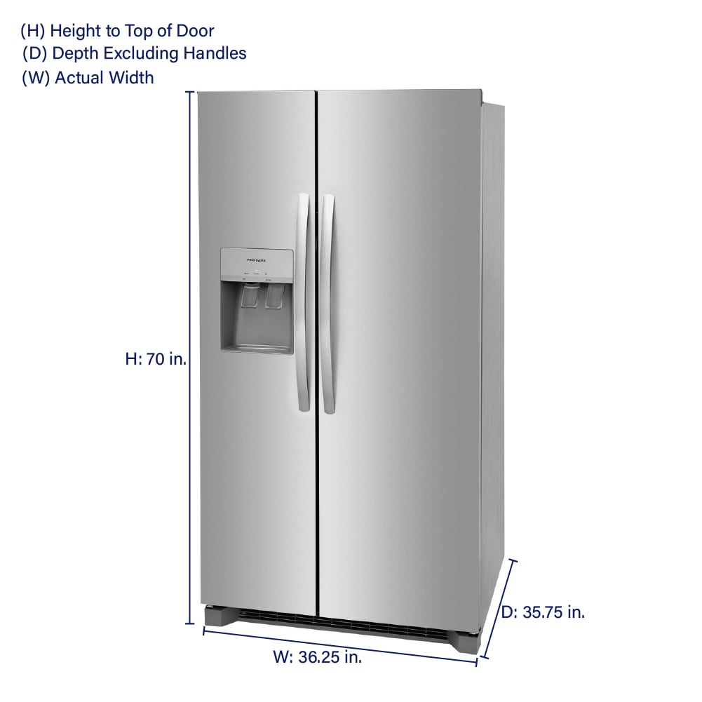 This Frigidaire 36-in side-by-side refrigerator offers our EvenTemp™ Cooling System which reacts quickly to temperature fluctuations and constantly circulates cold air throughout the fresh food and freezer compartments, ensuring a consistent cool from top to bottom. Keep fruits and vegetables fresh in our crispers that offer a seal to block out dry air. Enjoy the capacity to fit all of your family’s favorites and keep everything tidy with our flexible organization system that includes adjustable gallon door bins, removable glass shelves and two produce drawers. Awarded the Best Overall Side by Side Refrigerator of 2023 by Reviewed.com (USA Today).