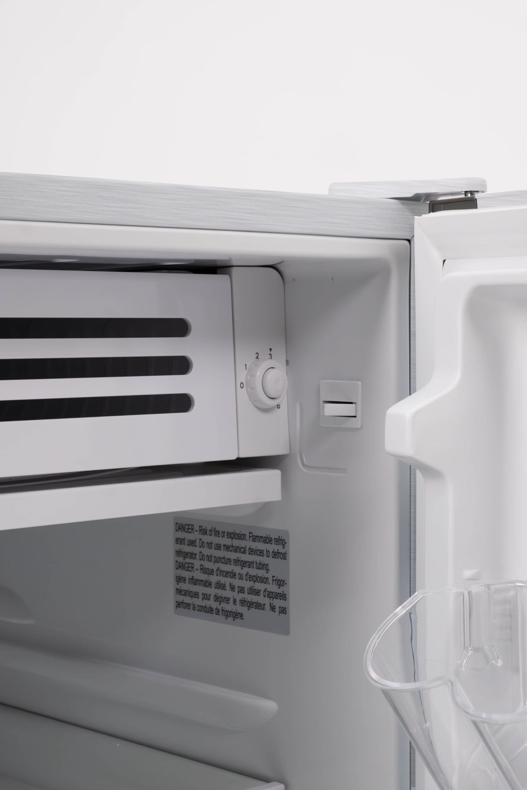 Reversible door offers option for right-handed or left-handed use.