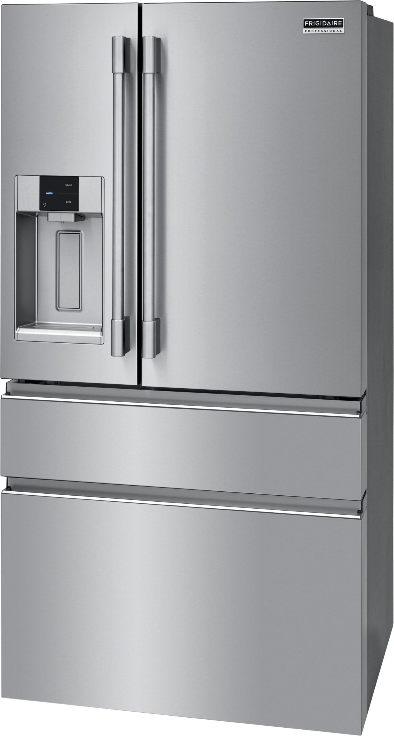 This Frigidaire four-door French door refrigerator offers the Custom-Flex® Temp Drawer, the only drawer available that fully switches from frig to freezer, so you can store all your family favorites from yogurt to frozen pizza. It helps keep fruits and vegetables fresh longer with CrispSeal® crispers, and it’s easy to organize and clean with SpaceWise® organization system and Smudge-Proof® stainless steel.