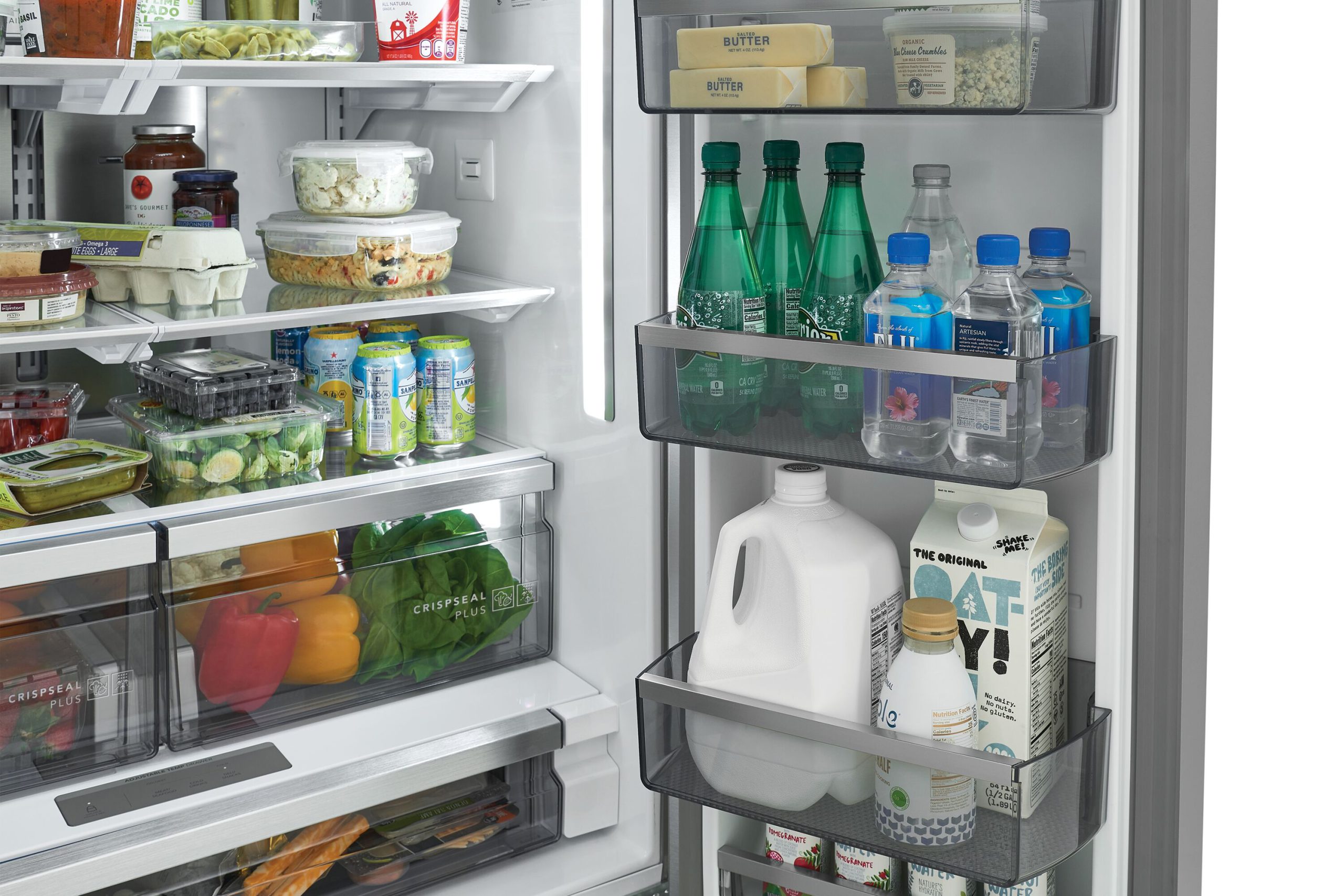 This Frigidaire Professional French door refrigerator offers a freshness system that maintains the taste and texture of even your most delicate foods. Our freshness system is packed with technologies that keep food fresh and reduce food waste, such as our cooling system, advanced crispers, and our genuine air and water filtration.