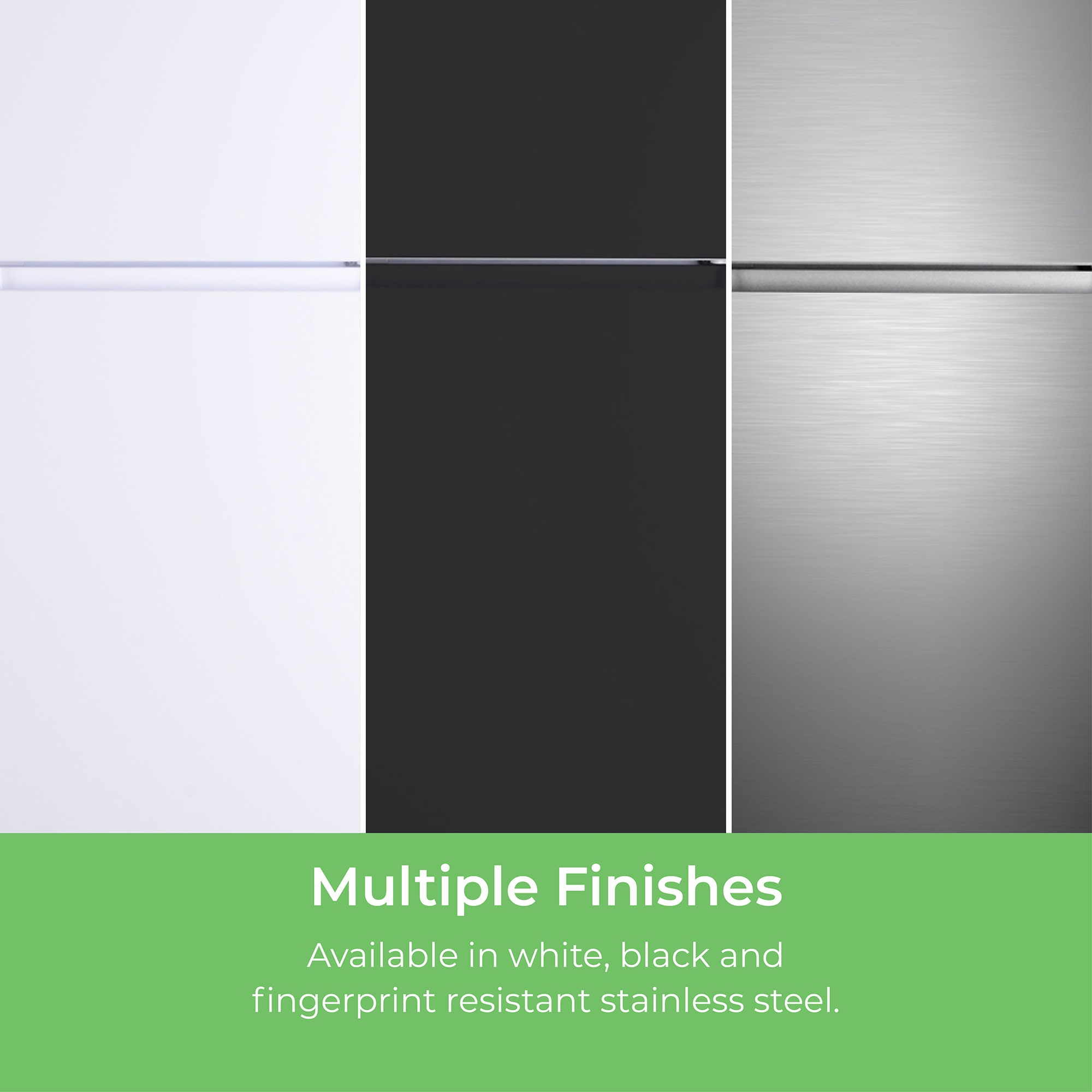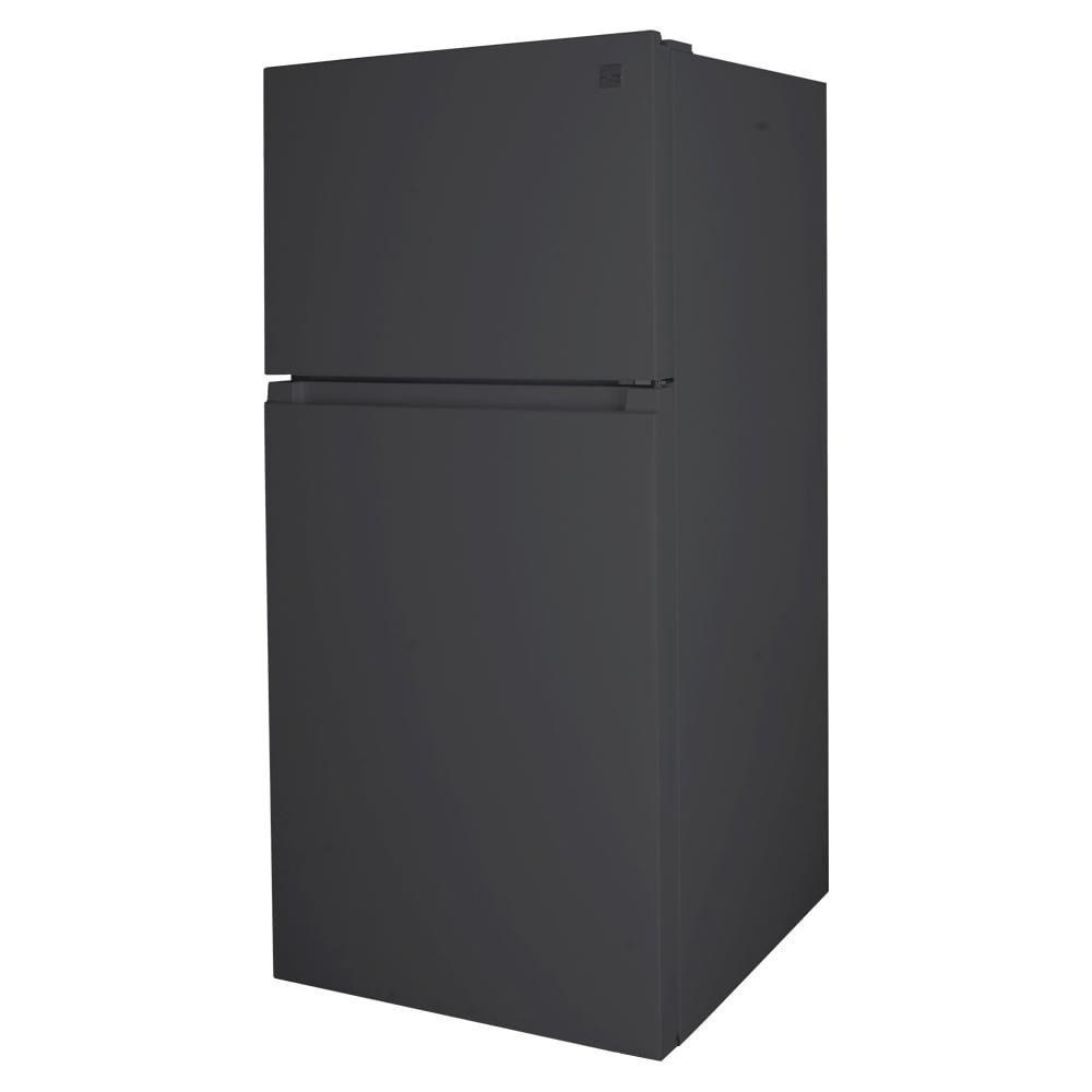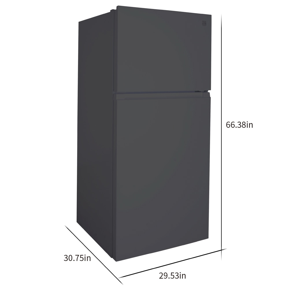 This Kenmore large black refrigerator and freezer has plenty of space to store your food and drinks, in style. This fridge has 18.1 cu. ft. of storage space, all in a 30-in wide footprint, saving space in your kitchen. Don’t worry, though, as this fridge with freezer is still the traditional standard-depth design! This refrigerator for your apartment or home comes with a factory installed icemaker that produces up to 4 lbs. of crescent shaped ice per day. With a sleek, stylish construction and three different finish options, this black appliance is sure to fit in to any decor scheme. It features adjustable, full-width glass shelves, so you can customize your fridge to fit taller bottles and make the most of your space. The clear humidity controlled crisper lets you choose the ideal humidity level to keep your fruits and vegetables fresh, while the clear dairy compartment can store all your butters and spreads at their ideal temperature. Both the refrigerator and the top freezer have clear door bins, 3 in the fridge that can store a gallon of milk and 2 in the freezer to help you keep things organized and easily accessible. And don’t worry about the energy bill, because this LED lighting refrigerator is ENERGY STAR® Certified, keeping energy use reasonable and costs low. The whole refrigerator freezer unit finishes with an elegant pocket style handle, recessed for a sleek flush-front design. Truly, it’s the perfect multifunctional fridge and freezer set for any home!
