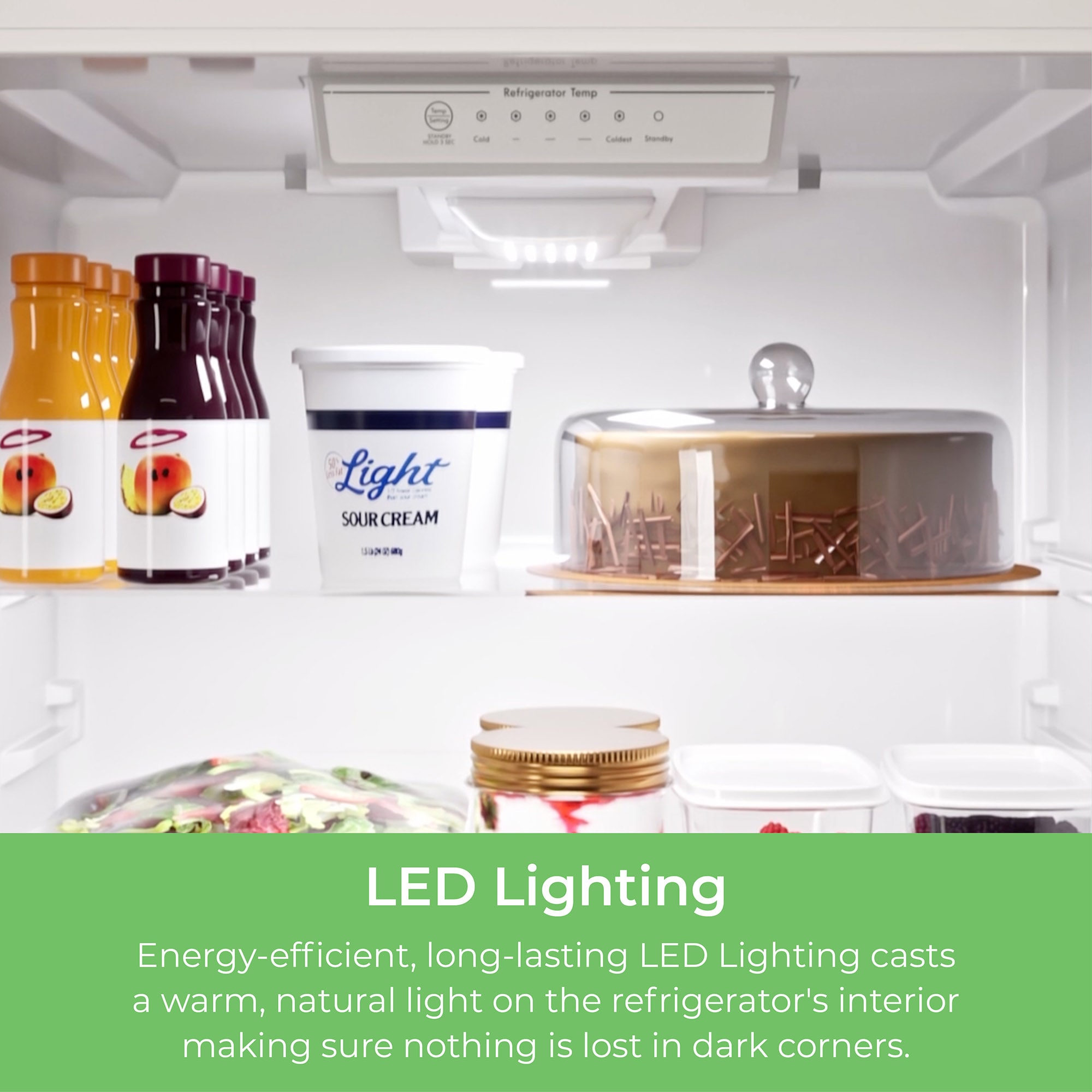 Customize your storage space with easy to move, full-width glass fridge shelves for maximum storage flexibility