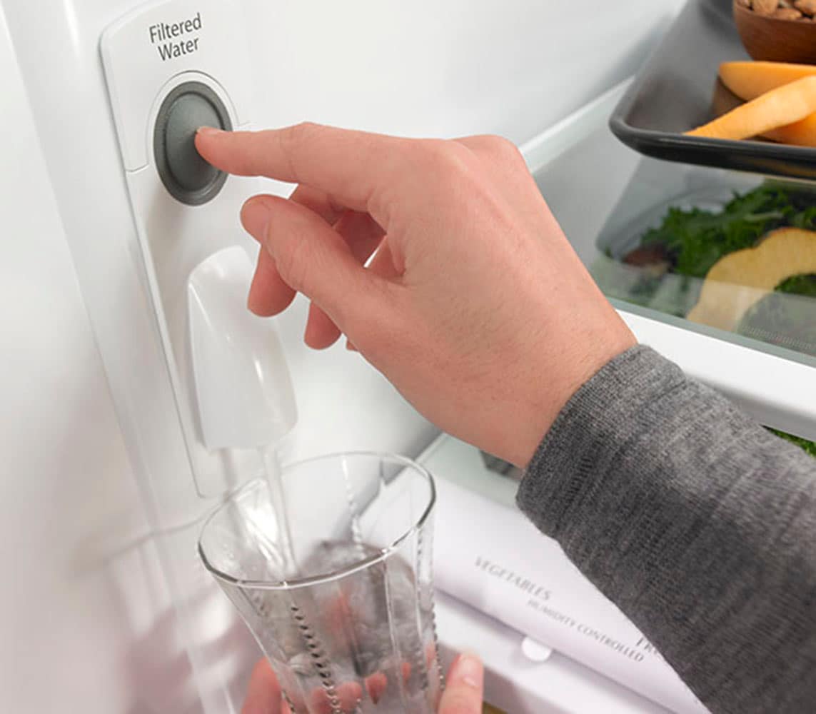 Interior water dispenser provides easy access to filtered water inside the refrigerator