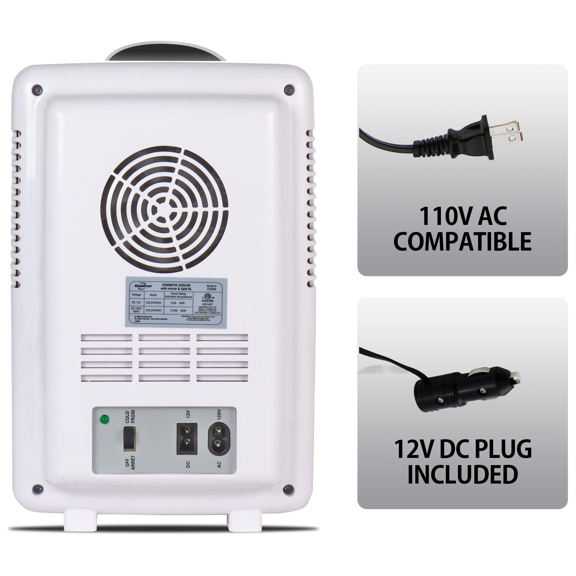 Store, transport, and apply your cosmetics at home or while traveling with one convenient AC/DC-powered device: a mini fridge. This lightweight, portable cosmetic fridge does double-duty. Its mirrored door includes dimmable LED lighting so you can apply your makeup perfectly every time. Extend the life of your fine cosmetics and quality skincare products by keeping them refrigerated in this mini fridge. Feel like every day is a spa day when you apply them! Whether you’re at home or on the go, this mini fridge ensures your cosmetics are always cool and ready for use, giving you that refreshing feeling every time you pamper yourself.
