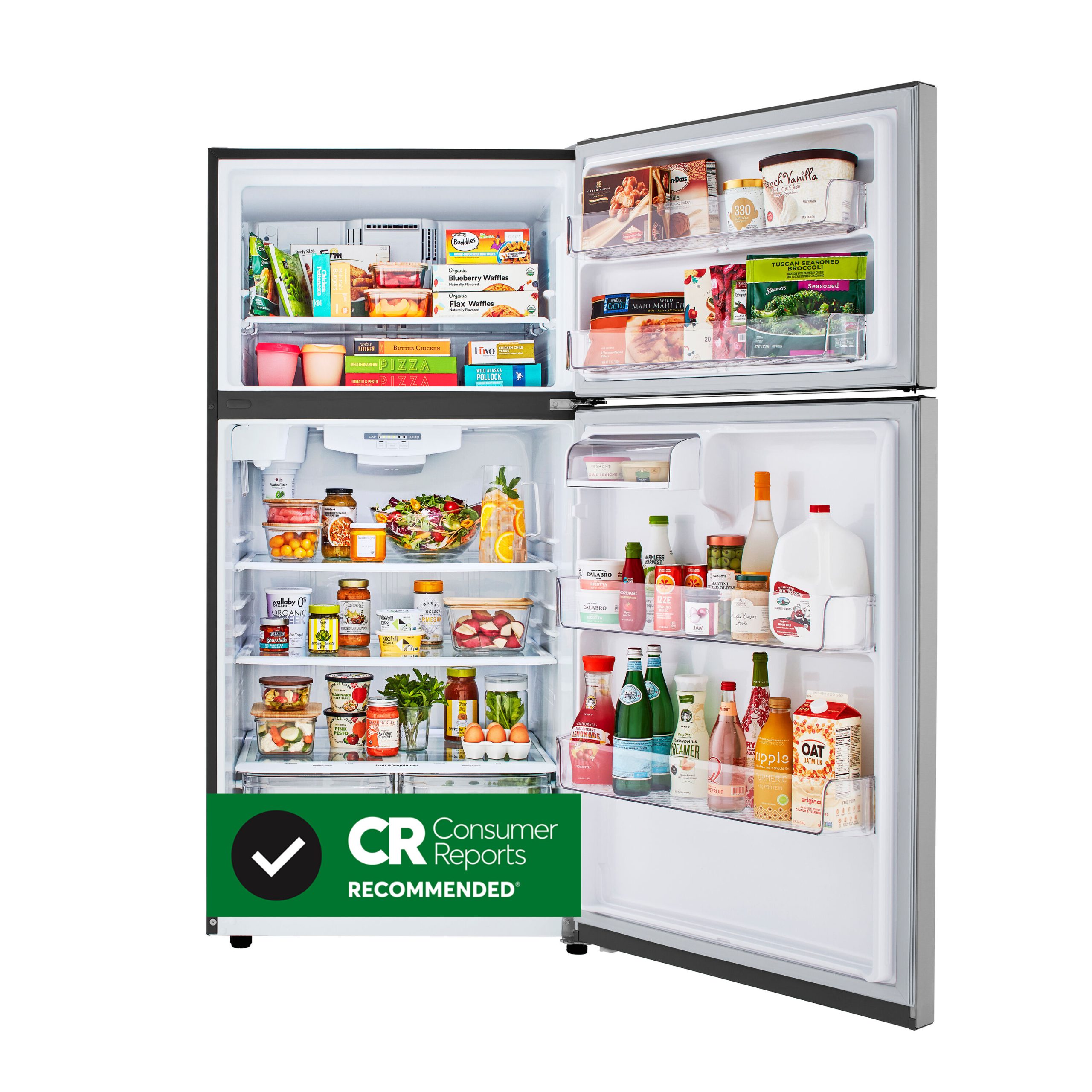 Go big with LG’s top-mount refrigerator featuring a staggering 23.8 cu. ft. of refrigerator and freezer storage space. In addition to surprising capacity, you’re also have freshness with LG’s humidity-controlled crispers. Help extend the life of your fruits and vegetables … and see it more clearly with LG’s advanced LED interior lighting. This elevated design is also on the outside – PrintProof stainless steel finish keeps smudges away with the wipe of a cloth, along with a sleek pocket handle.