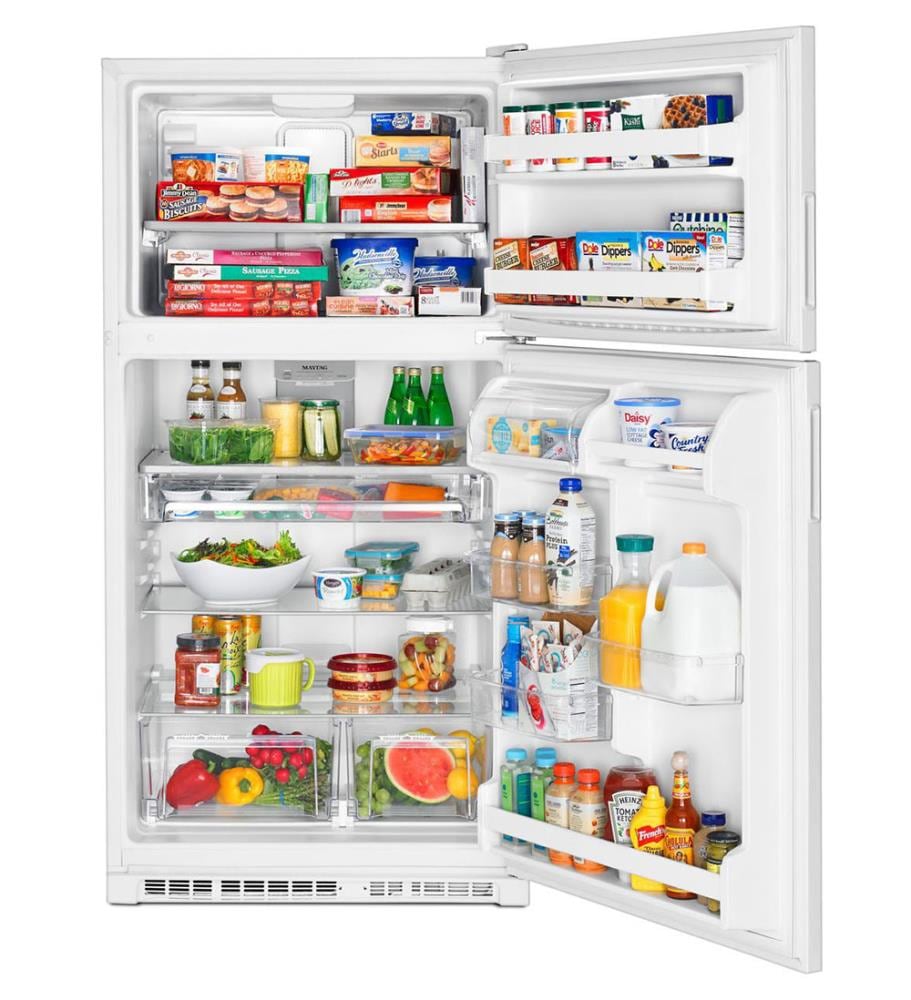 Maytag® top-freezer refrigerators are built to hold the cold with features like the PowerCold® feature that chills down the refrigerator to help keep everything cool with the touch of a button—even if the whole family’s been browsing with the door open. Plus, fingerprint resistant stainless stainless steel keeps this fridges looking great. Inside this 21 cu. ft. model you’ll also find the BrightSeries™ LED lighting. It casts a bright, white light and uses less energy than incandescent bulbs.