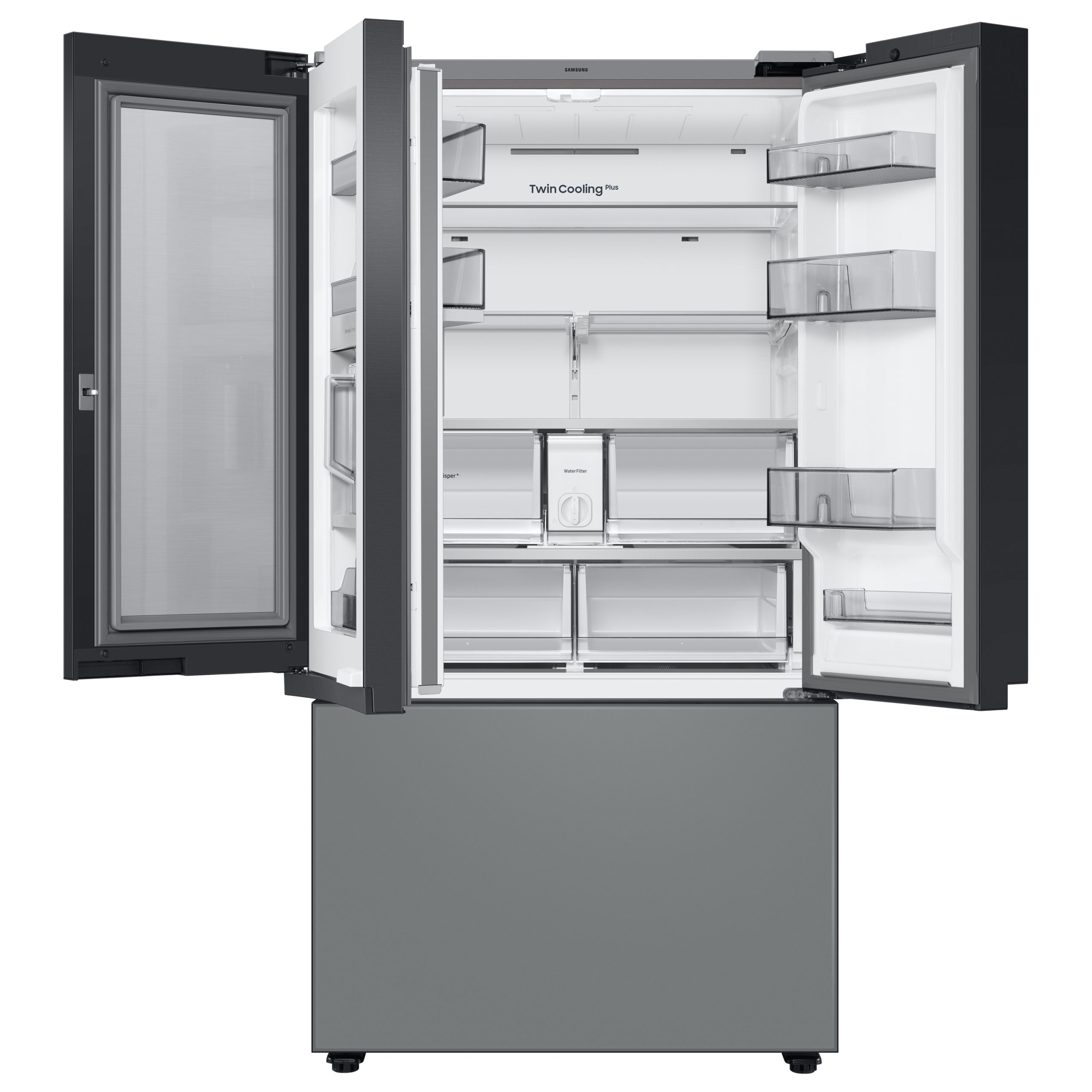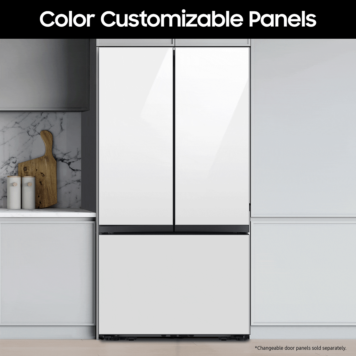 Samsung Bespoke Standard-Depth Family Hub 29.8-cu ft 3 -Door Smart Compatible French Door Refrigerator with Dual Ice Maker with Water Dispenser and Door within Door ( White Glass Top with Matte Grey Glass Bottom Panel ) ENERGY STAR Certified