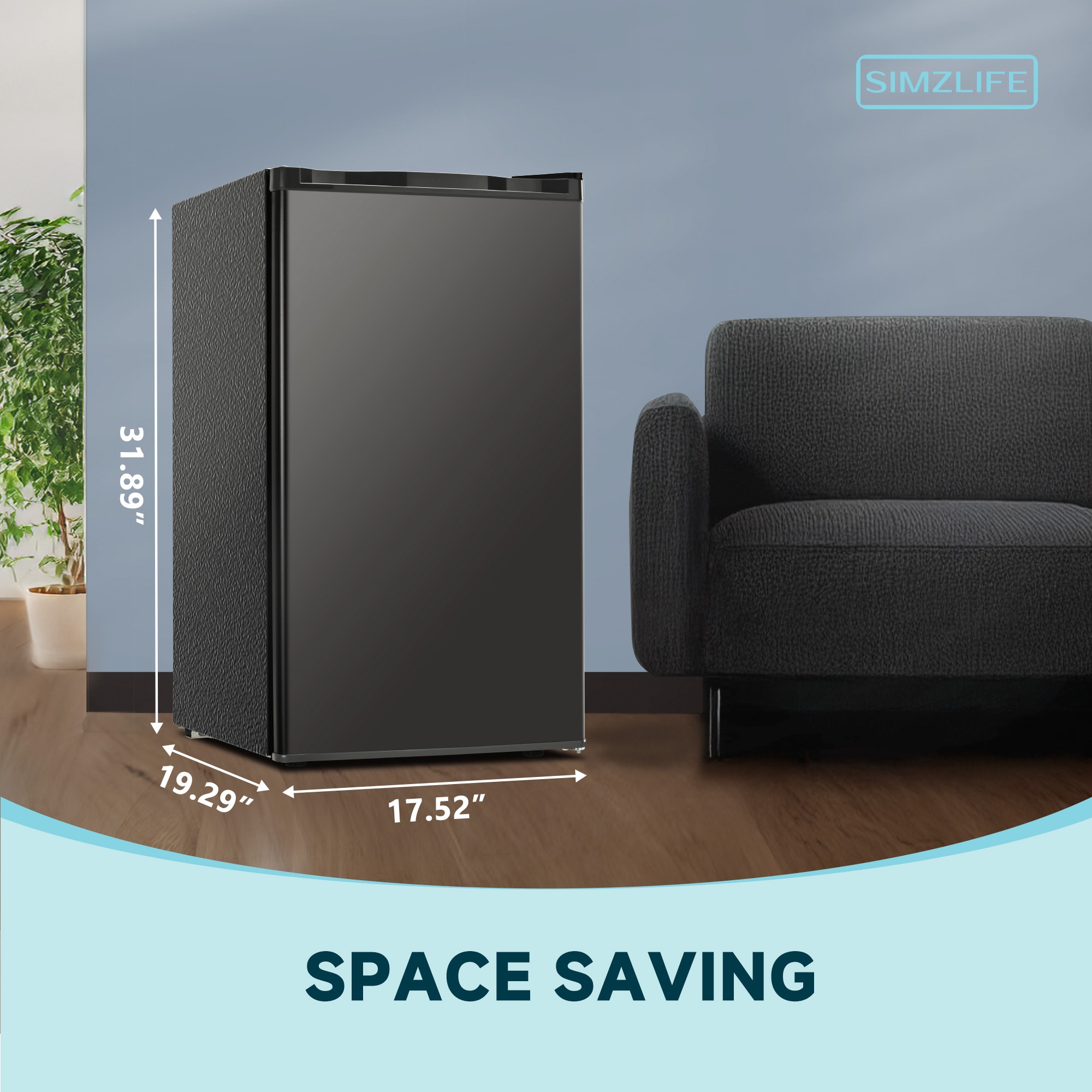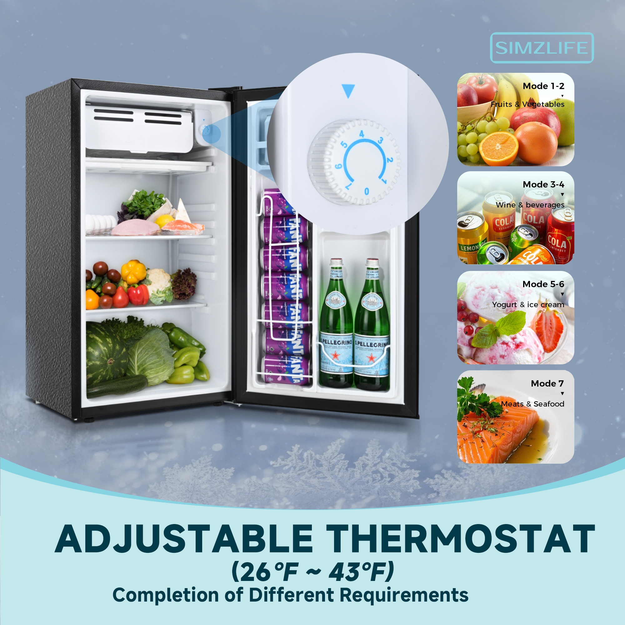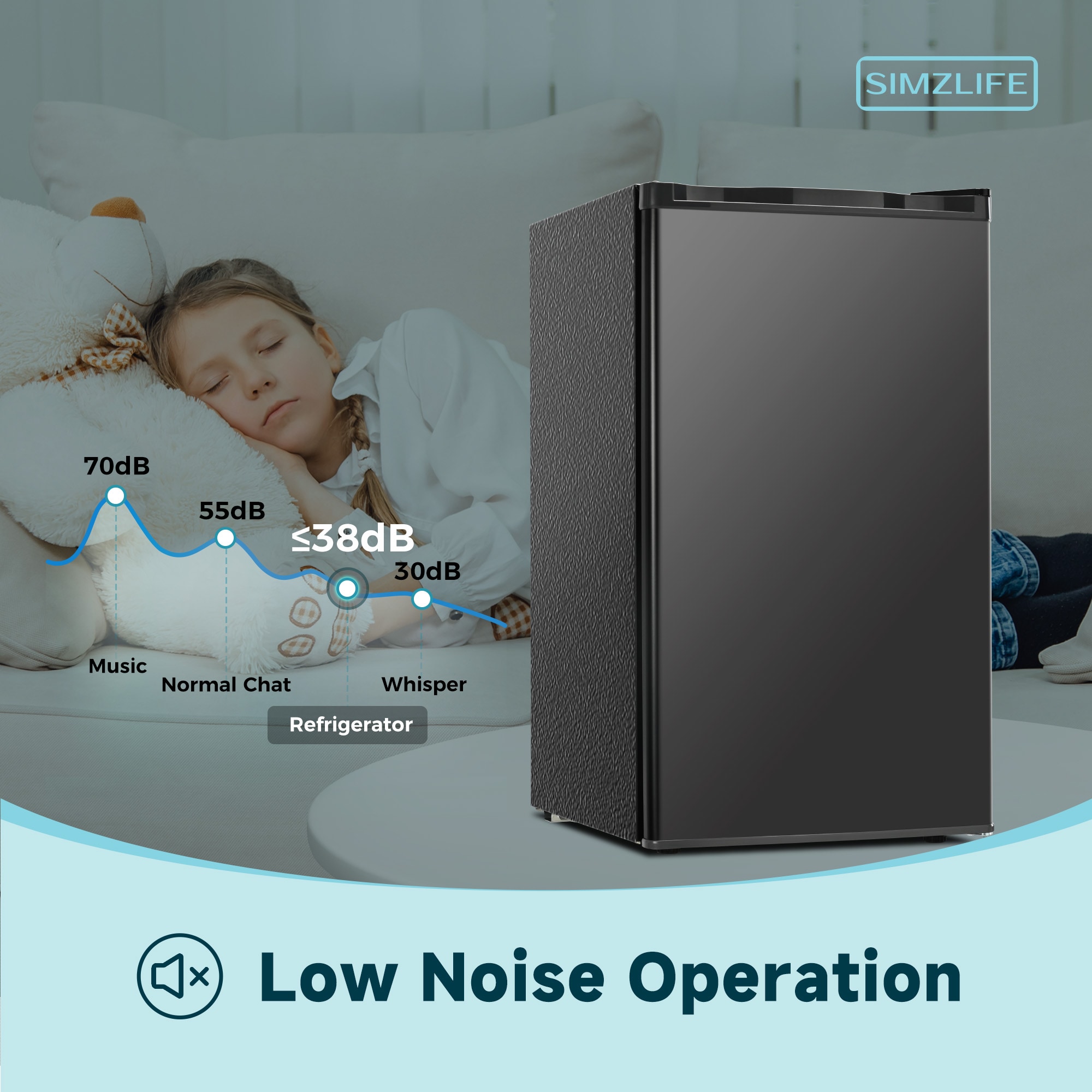 Our mini refrigerator, energy-saving and environmentally friendly, providing you with an efficient cold storage experience. Uniquely user-friendly design with LED light allows you to access it anytime at night with no restrictions. Featuring a large capacity of 3.2 cu. ft. including 2.9 cu. ft. refrigeration section and 0.3 cu. ft. micro-freezing section, it meets your various storage needs. Compact design for bedrooms, kitchens, dormitories and offices with a small footprint of only 2.2 square feet. Quiet operation, only 38dB, five-position temperature control knob, precise temperature adjustment, thoughtful details reflect quality.Our professional after-sales team is at your service 24 hours a day, and the product is fully equipped, so you can enjoy a convenient refrigeration experience.