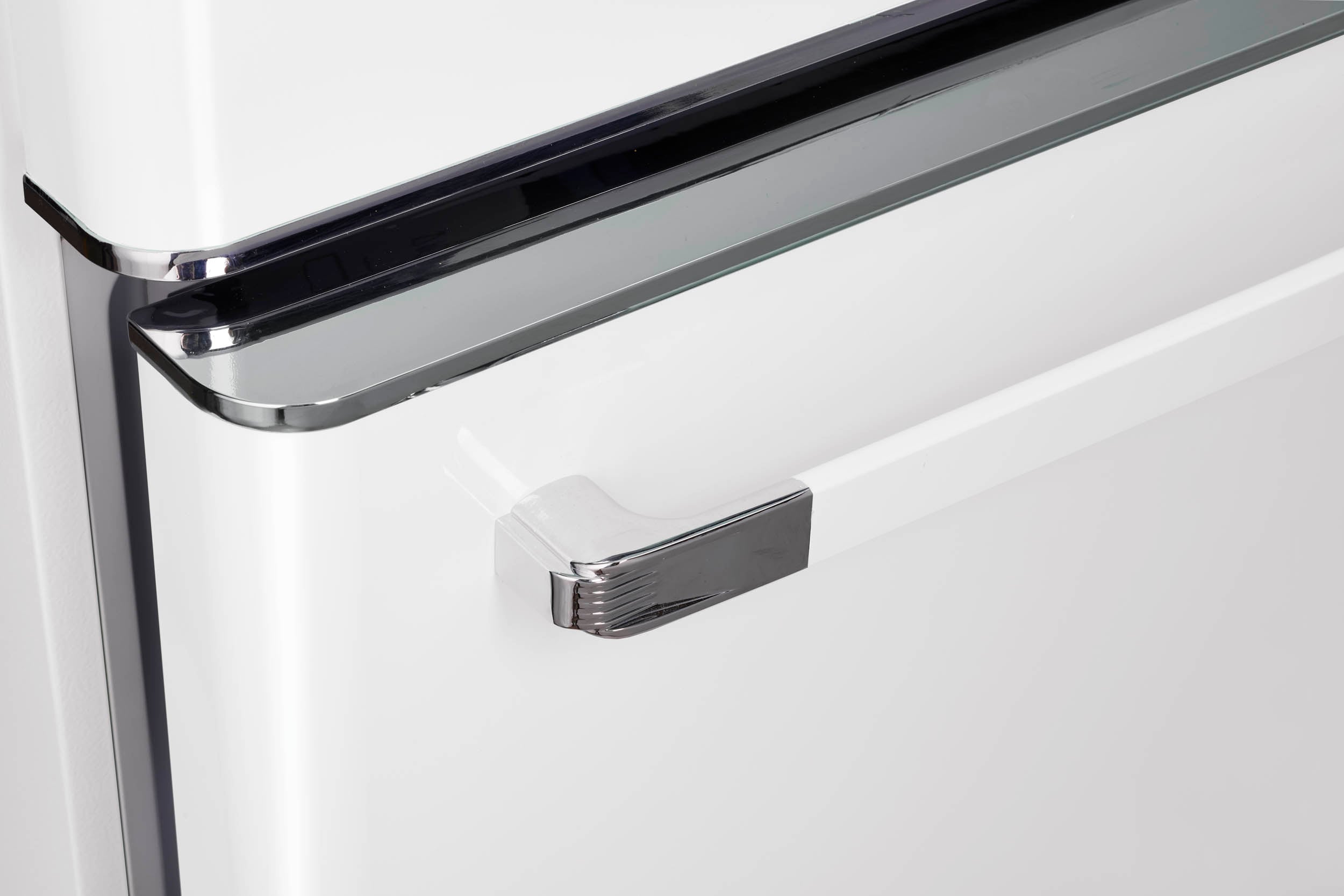 The 18 cu. Ft. Classic Retro counter-depth bottom mount refrigerator is the perfect family sized refrigerator with ample space to keep all your fresh and frozen foods, packaged in an eye-catching throwback design. This refrigerator is energy star certified for energy efficiency all year-round, designed for optimal energy savings and easy, dependable use. Its frost-free design allows easy cleaning without dealing with frost buildup. It also comes with a built-in icemaker. Create a Unique classic retro kitchen!