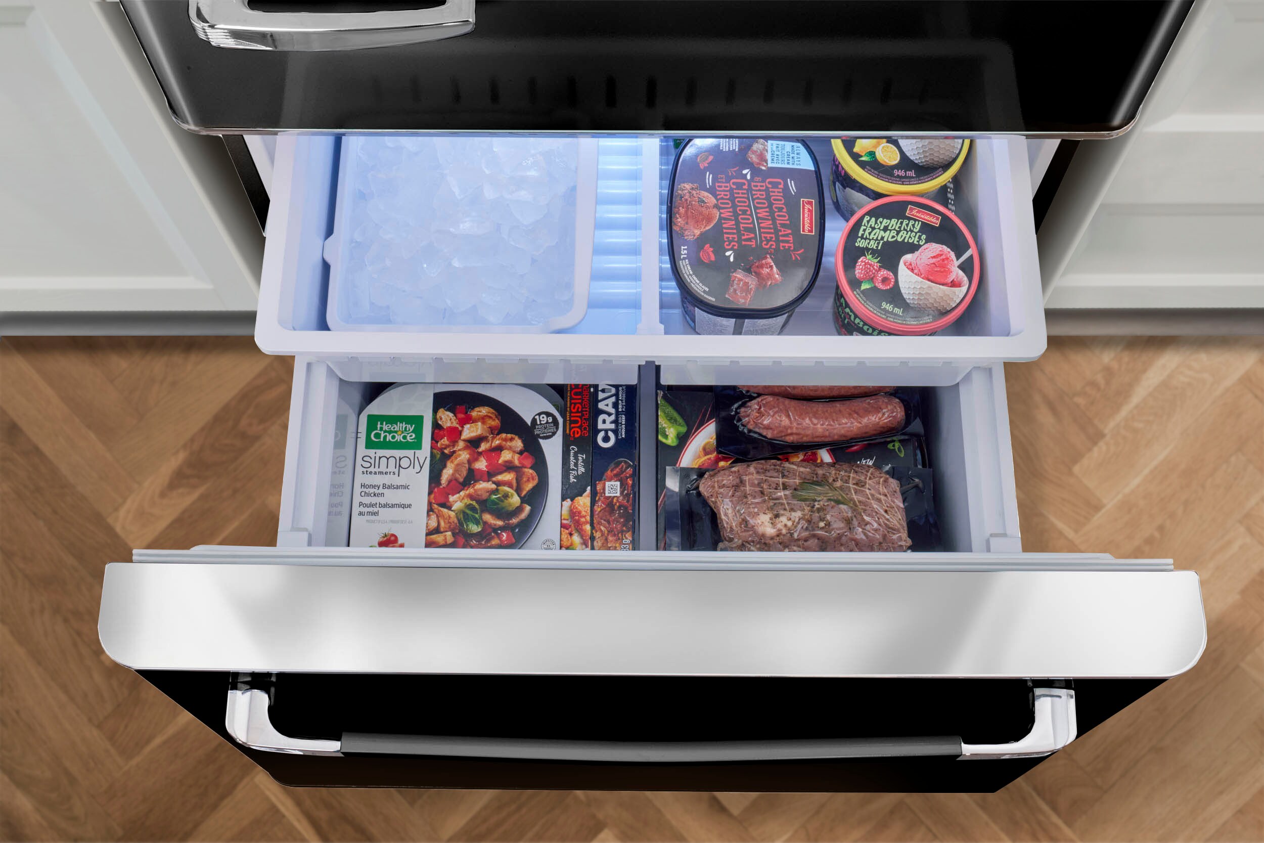 Three spacious freezer drawers provide ample storage space