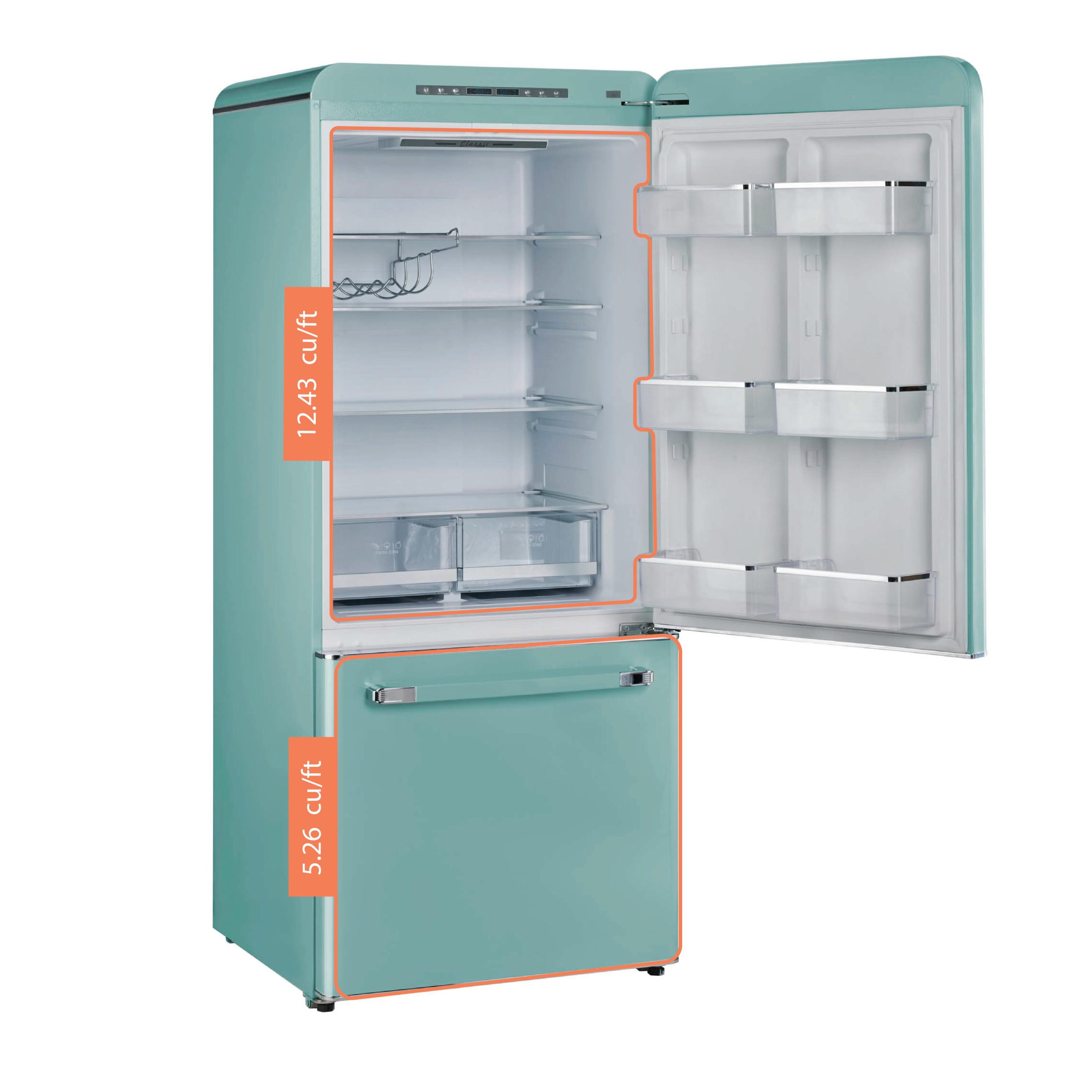 The 18 cu. Ft. Classic Retro counter-depth bottom mount refrigerator is the perfect family sized refrigerator with ample space to keep all your fresh and frozen foods, packaged in an eye-catching throwback design. This refrigerator is energy star certified for energy efficiency all year-round, designed for optimal energy savings and easy, dependable use. Its frost-free design allows easy cleaning without dealing with frost buildup. It also comes with a built-in icemaker. Create a Unique classic retro kitchen!