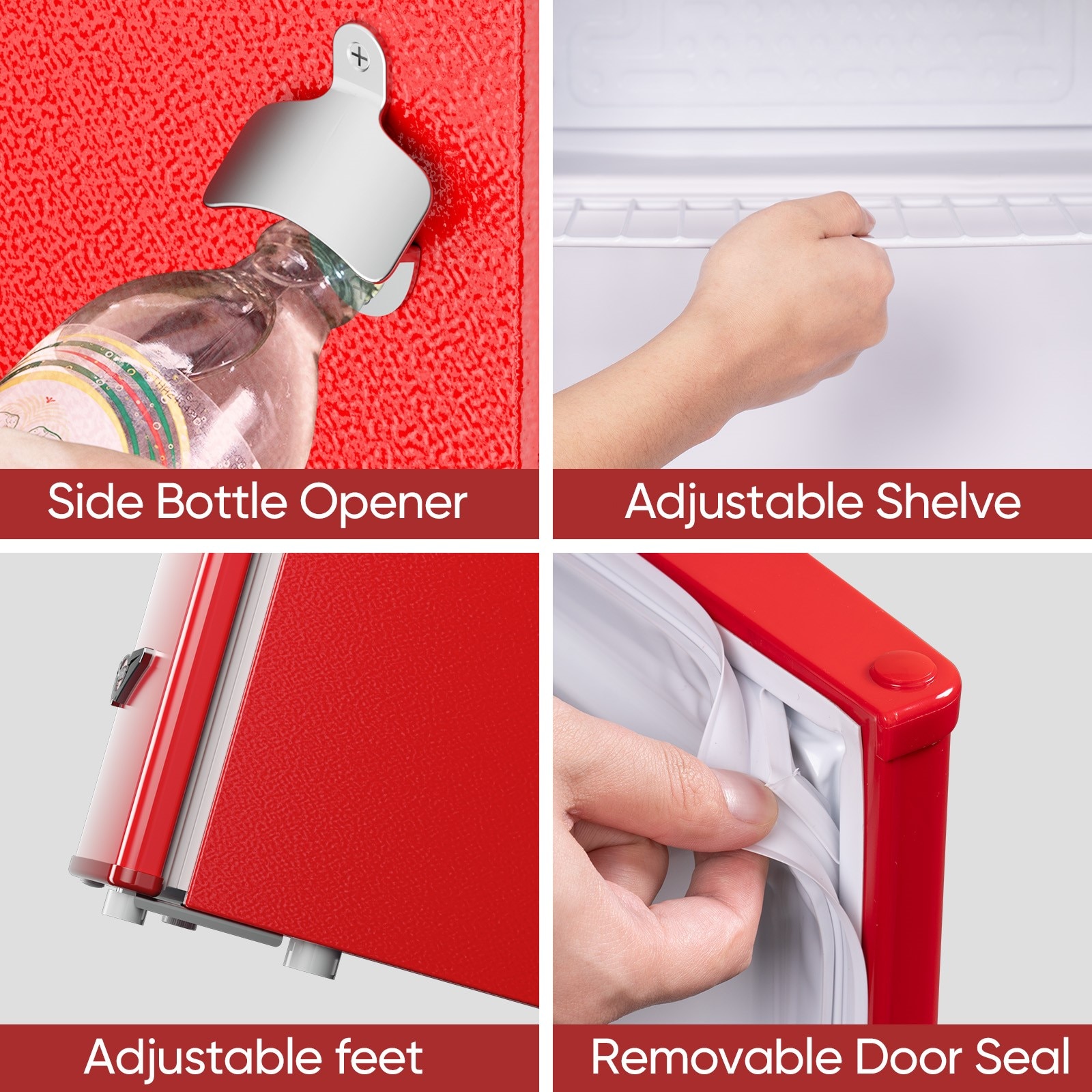 Featuring a classic exterior with metal handle and side bottle opener, the overall appearance of this retro refrigerator is stylish and high texture.
