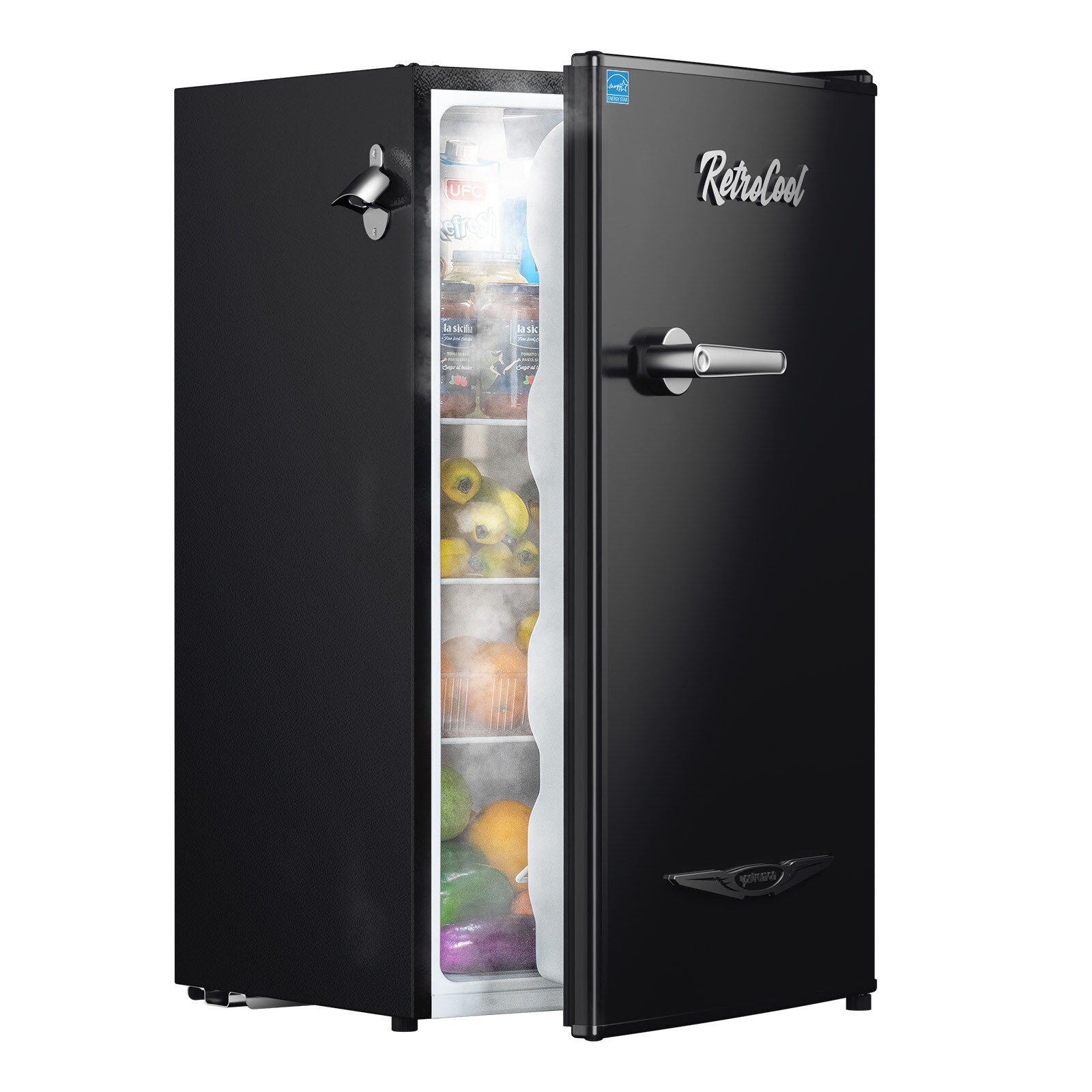 Featuring a classic exterior with metal handle and side bottle opener, the overall appearance of this retro refrigerator is stylish and high texture.