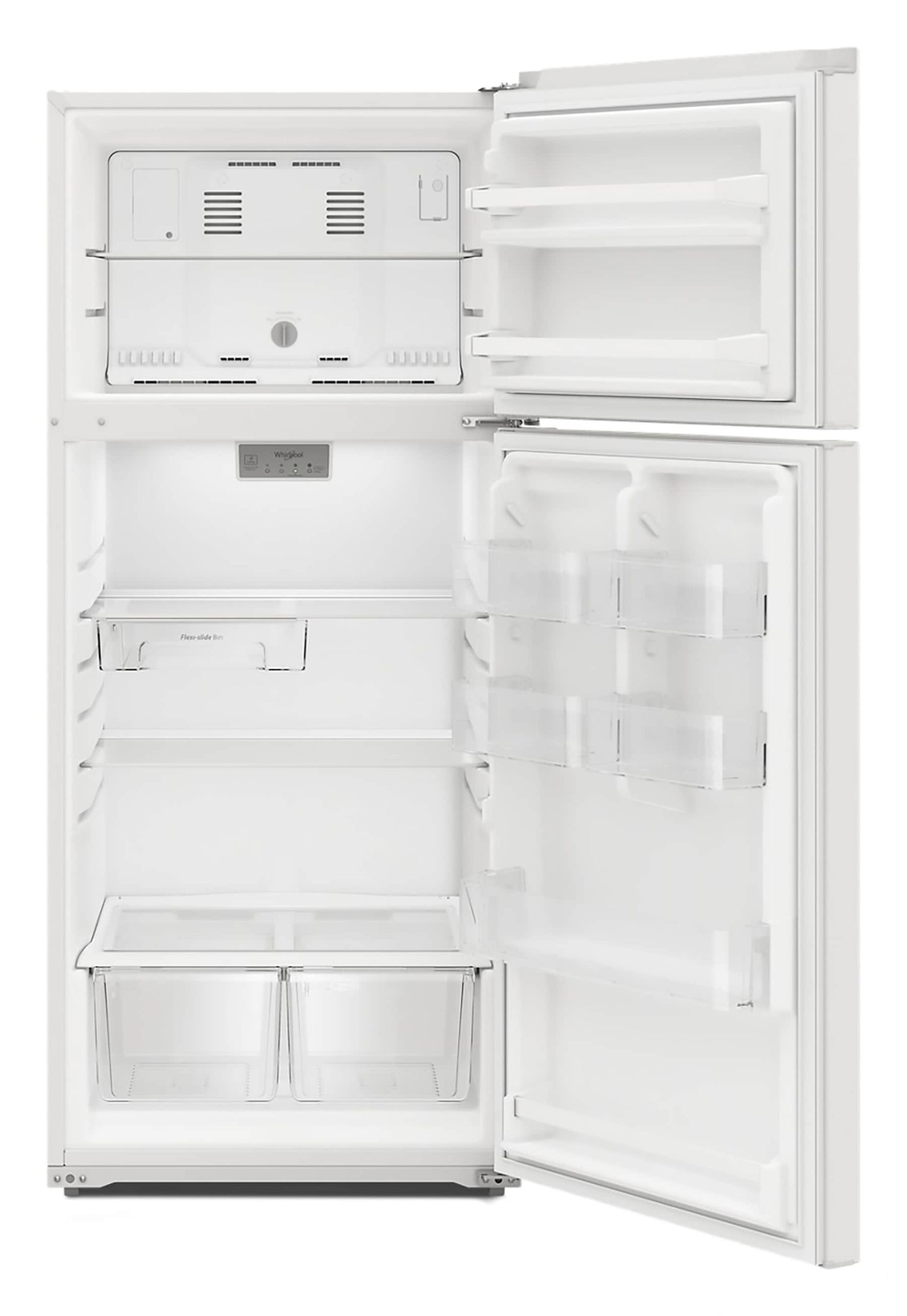 Stay organized and make room for all your groceries with our top freezer refrigerator. The Flexi-Slide™ Bin and Adjustable Glass Shelves give you the flexibility you need to store what you want, where you want it. Keep your food looking good and staying fresh with features like interior led lights and electronic temperature control.