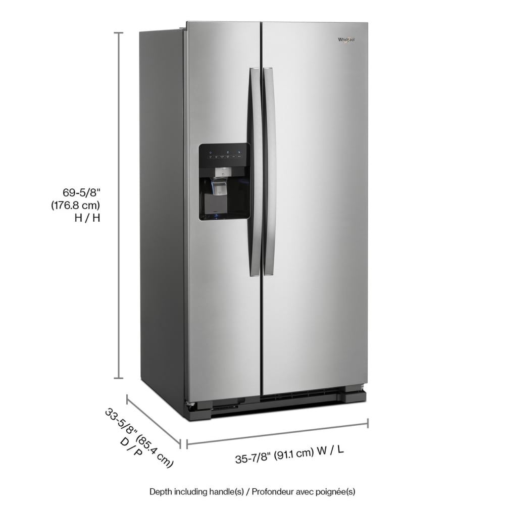 Purposeful storage in a refrigerator is a game changer. This 24.6 cu ft side-by-side refrigerator from Whirlpool® has many thoughtful features that optimize storage so you can fit and find your family’s most loved foods and beverages. Good to know: Whirlpool® refrigerators have the lowest repair rate among side by side refrigerators. (*Claim compares Whirlpool branded refrigerators to GE, Frigidaire, Samsung and LG.Based on service required data, Q2 2022-Q2 2023, Traqline – The Stevenson Company, 2023.) This model is only available at Lowe’s. Only available at Lowe’s.