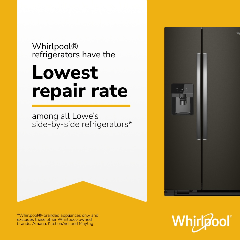 Equipping your kitchen with a refrigerator that meets your needs is a game changer. This 21.4 cu ft side-by-side refrigerator from Whirlpool is designed with storage spaces for items your family uses the most, and clever features, like the in-door caddy for canned beverages and bottles. Good to know: Whirlpool® refrigerators have the lowest repair rate among side by side refrigerators. (*Claim compares Whirlpool branded refrigerators to GE, Frigidaire, Samsung and LG.Based on service required data, Q2 2022-Q2 2023, Traqline – The Stevenson Company, 2023.)