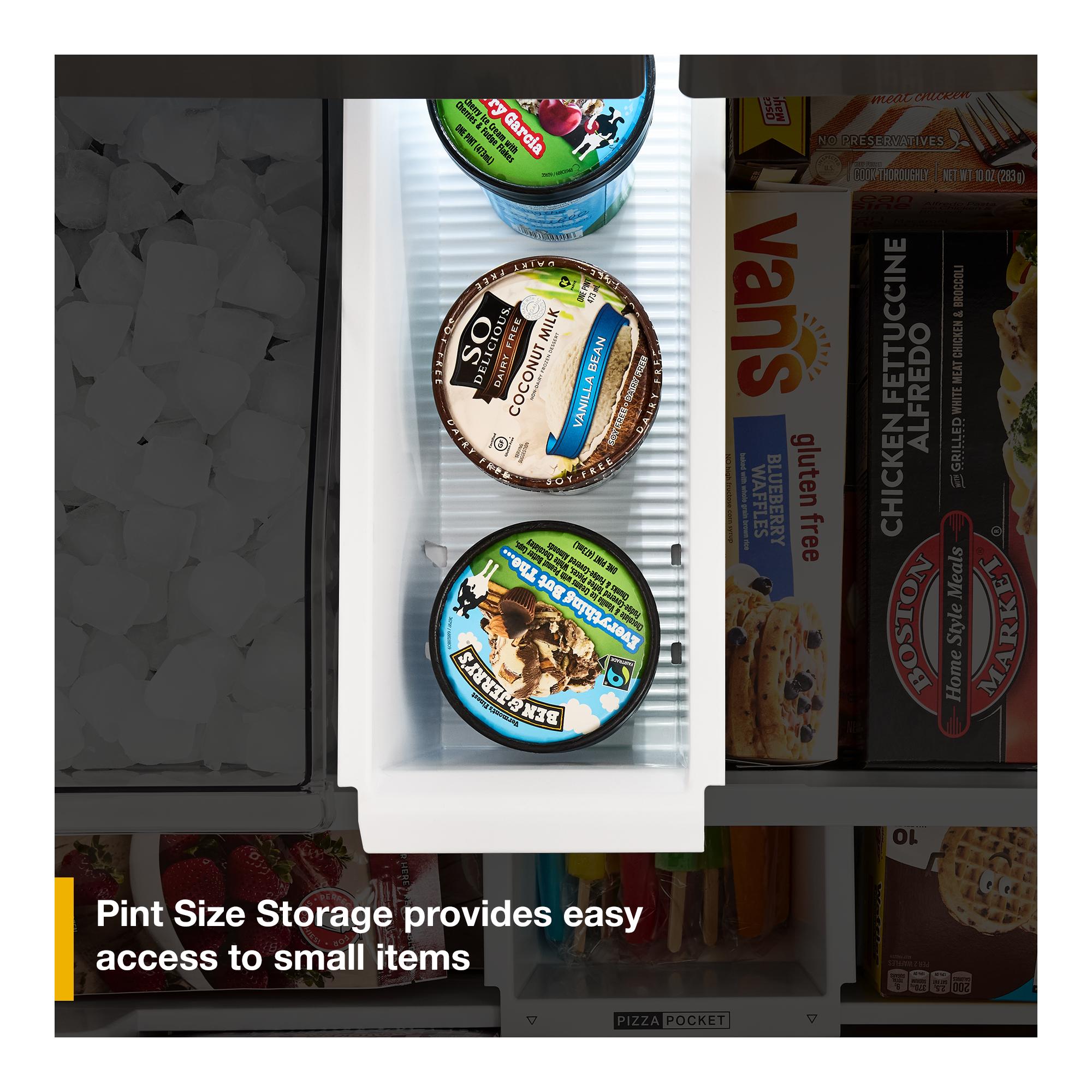 Easily store frozen pizzas upright in the pizza pocket