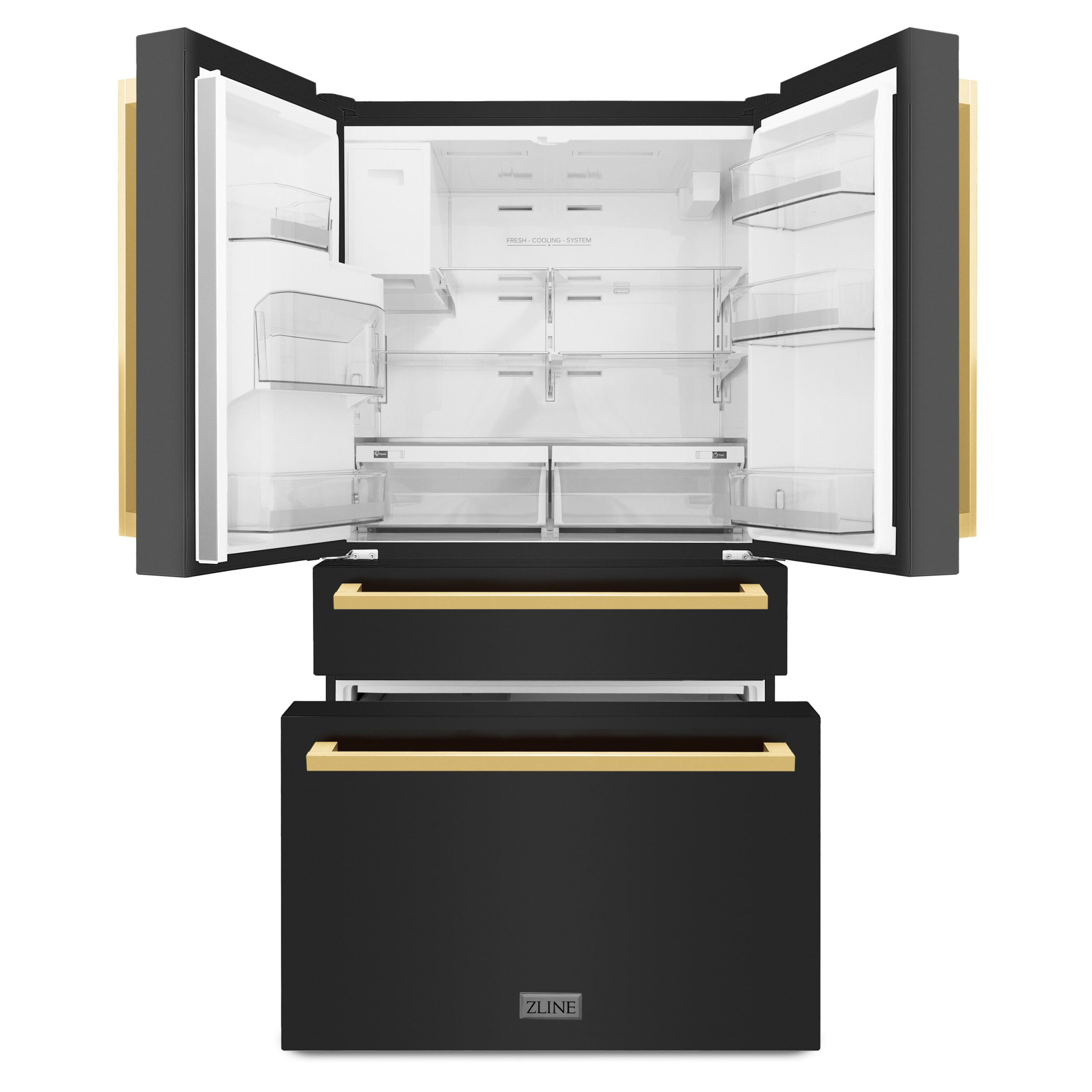 Luxury isn’t meant to be desired – it’s meant to be attainable. The ZLINE Autograph Edition 36 in. 21.6 cu. ft. Counter-Depth French Door Refrigerator with Water and Ice Dispenser in Fingerprint-Resistant Black Stainless Steel with Polished Gold Modern Handles (RFMZ-W-36-BS-FG) delivers an elevated experience by pairing innovative dual cooling technology with a spacious counter-depth design and an external water dispenser and ice maker. Achieve ZLINE Attainable Luxury® excellence with timeless features designed to enhance your kitchen’s capability.
