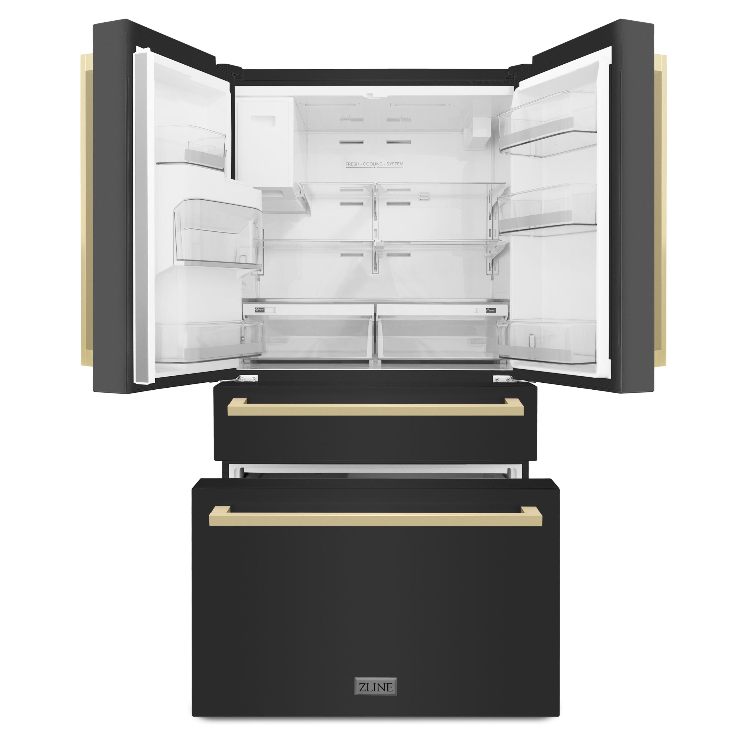 ZLINE KITCHEN & BATH Counter-Depth 22.5-cu ft 4 -Door Built-In French Door Refrigerator with Ice Maker with Water Dispenser ( Black Stainless Steel with Chamagne Bronze accent Handles ) ENERGY STAR Certified