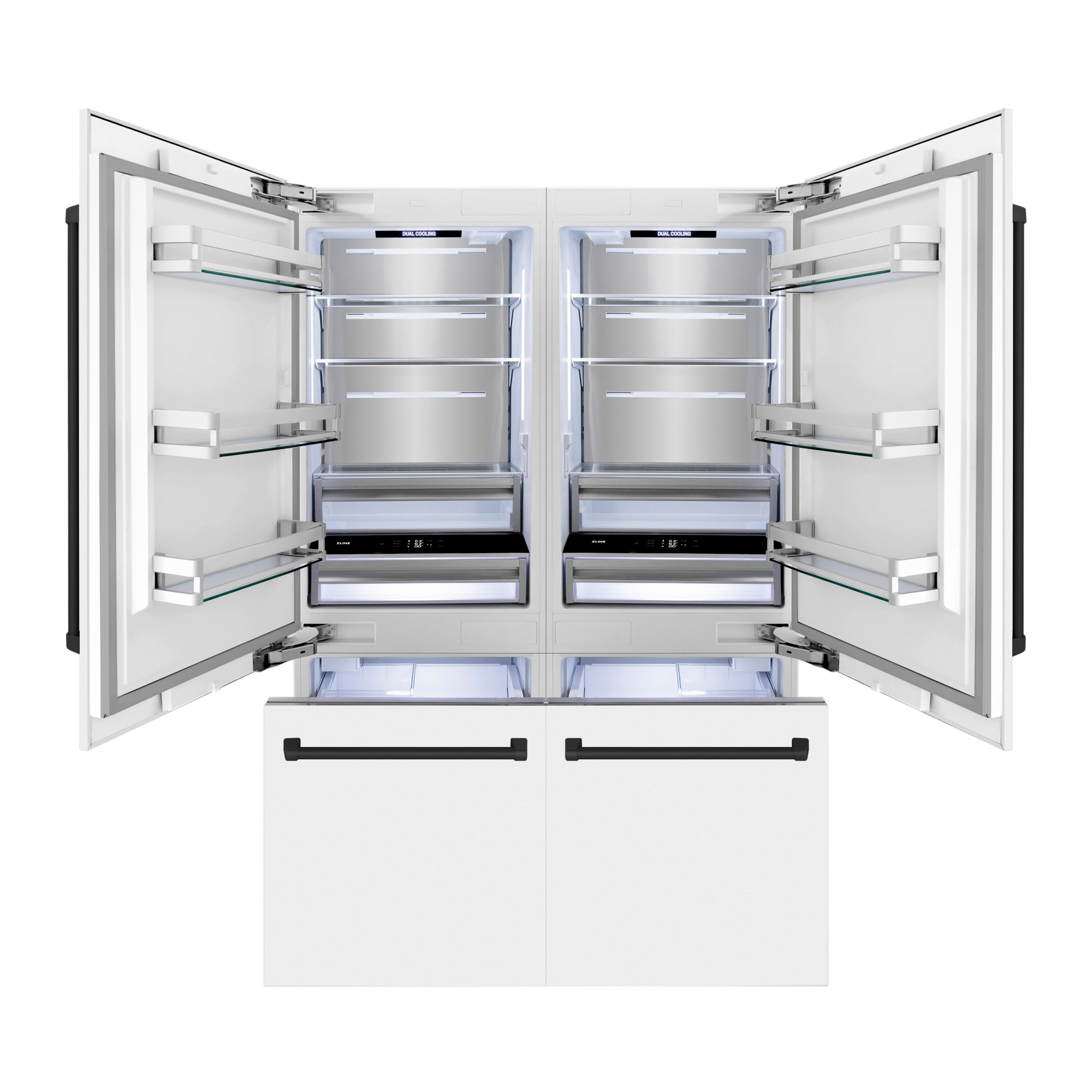 ZLINE KITCHEN & BATH Counter-Depth 32.2-cu ft 4 -Door Built-In French Door Refrigerator with Ice Maker with Water Dispenser ( Stainless Steel with White Matte Panels and Matte Black accent Handles ) ENERGY STAR Certified