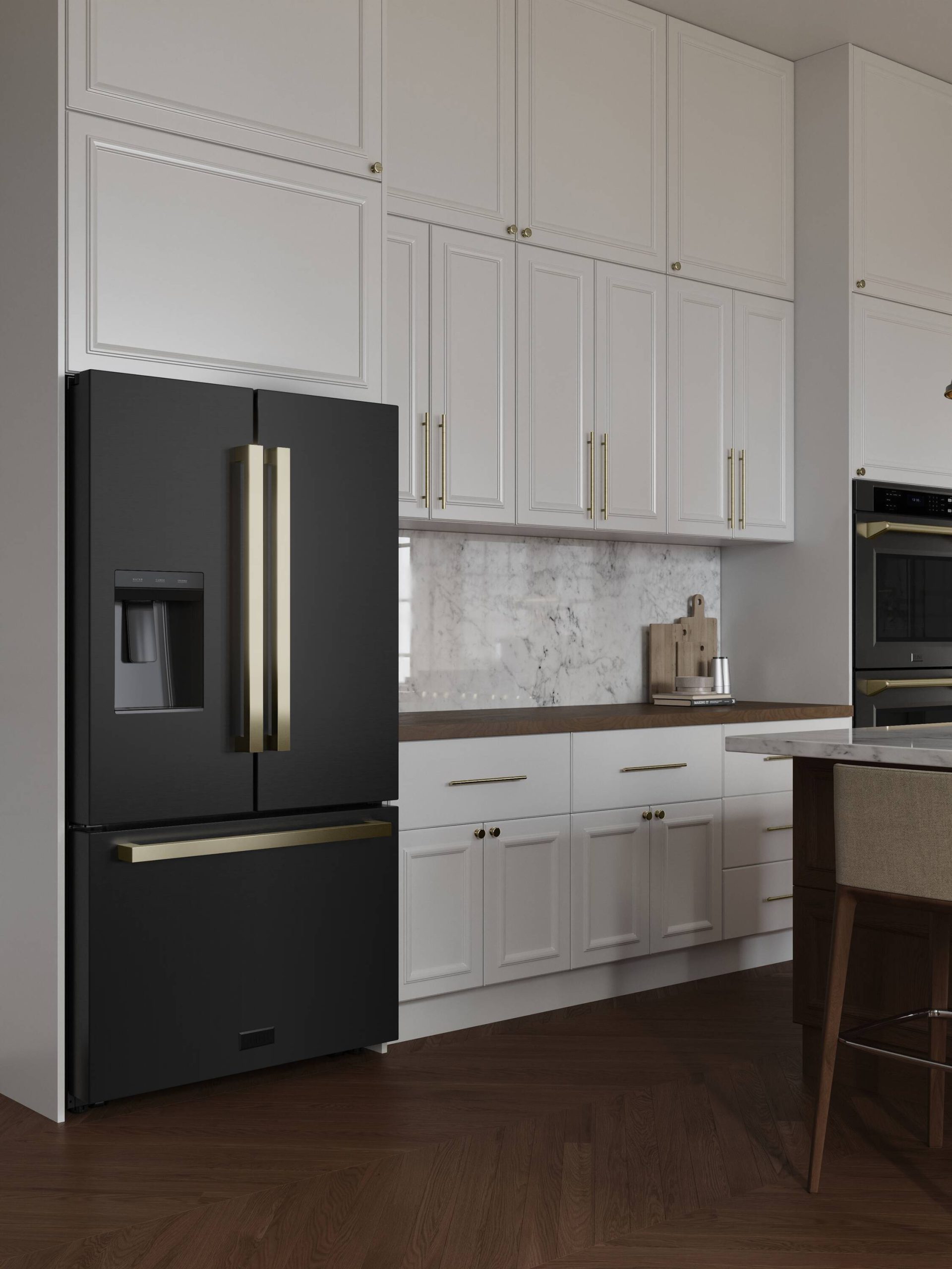 Autograph Edition Standard-Depth Design – Create a timeless look in your kitchen with a standard-depth refrigerator featuring ZLINE’s luxurious Autograph Edition Champagne Gold modern handles, a stunning fingerprint-resistant black stainless steel exterior finish, and a beautiful Bright White interior that delivers superior durability
