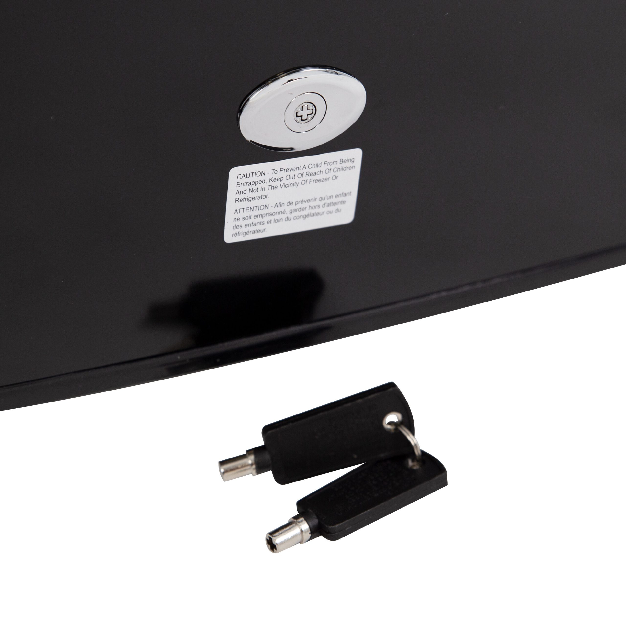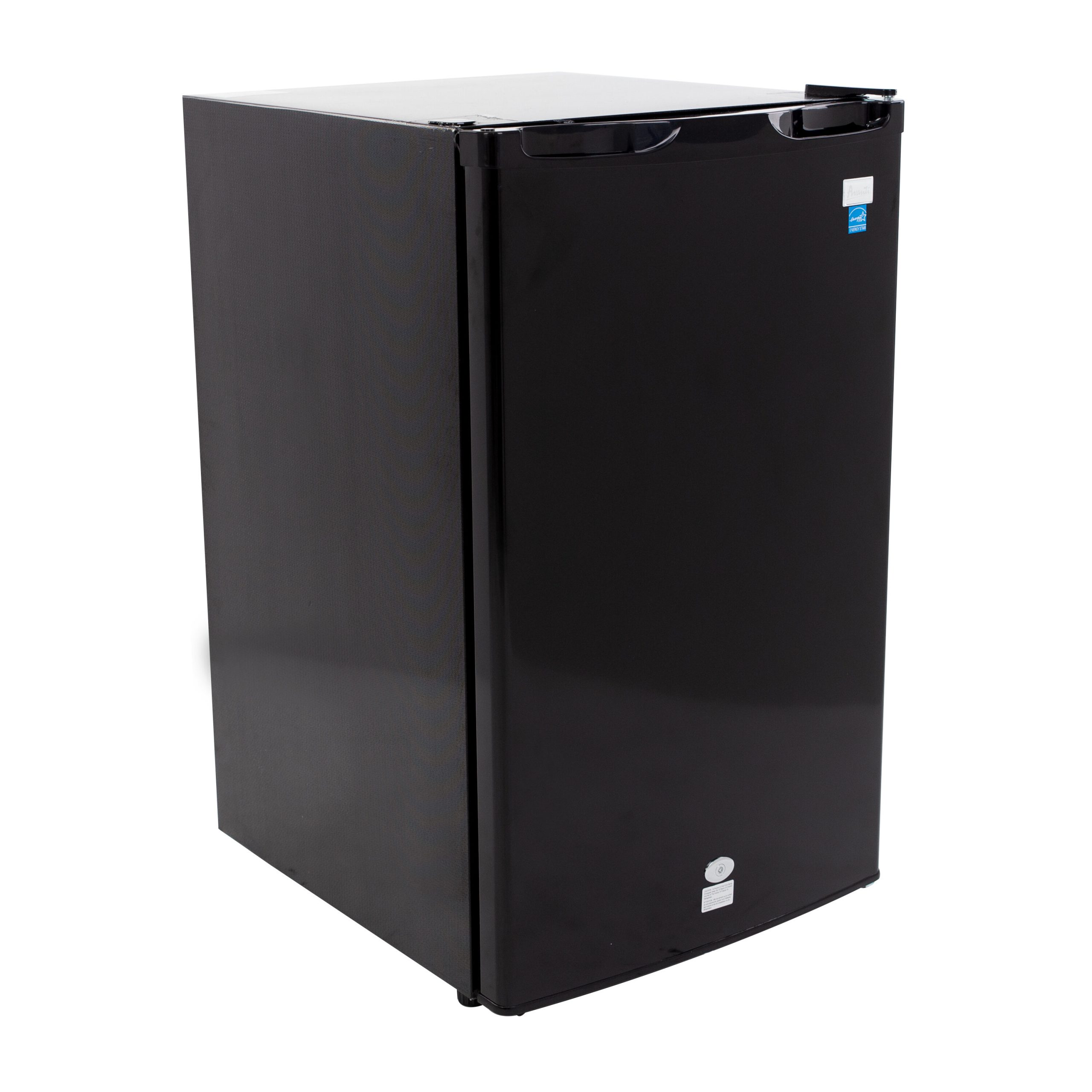Keep your snacks and favorite beverages close by in the compact, 4.4 cubic foot refrigerator from Avanti. The perfect lockable mini fridge for the office, dorm, man cave, she shed, bar, bedroom, or anywhere you need a little extra refrigerator space. The door shelves can accommodate 2 liter and gallon bottles and six 12 ounce cans, as well as other drinks and condiments. Use the adjustable, removable glass shelving to arrange salads, fruits, snacks, and other foods for easy access throughout the day. This compact fridge features automatic defrost so your foods remain fresh and cold. Select the right settings for your items with the full range temperature control.