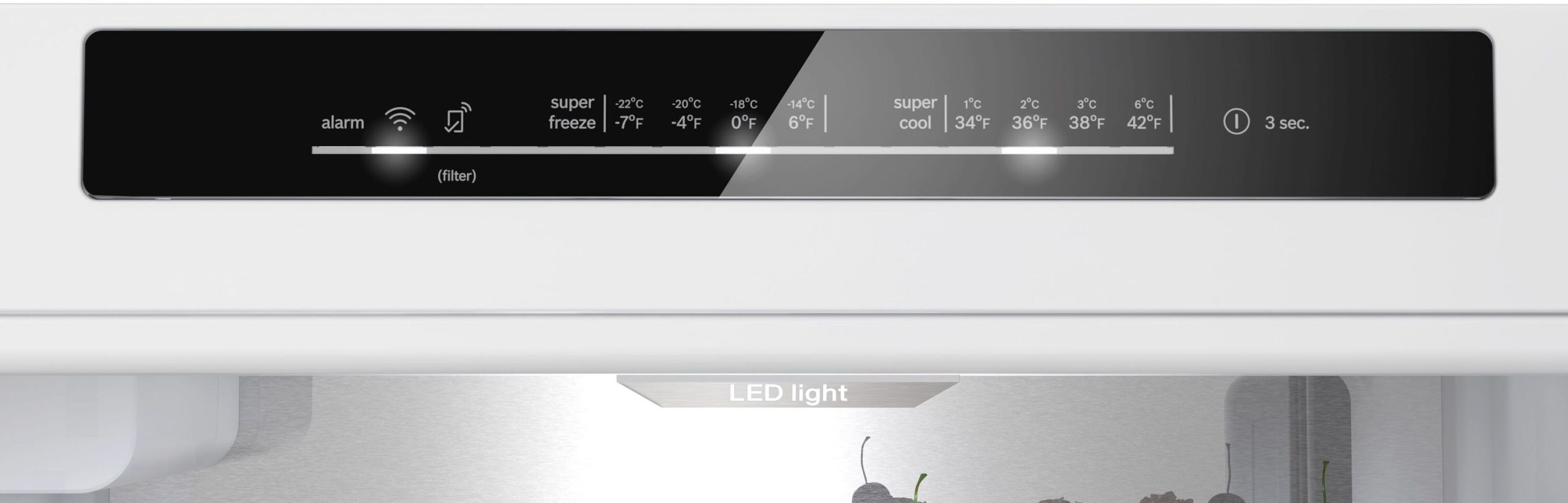 A large full-width drawer offers adjustable humidity, for the optimal environment for your fruits and vegetables