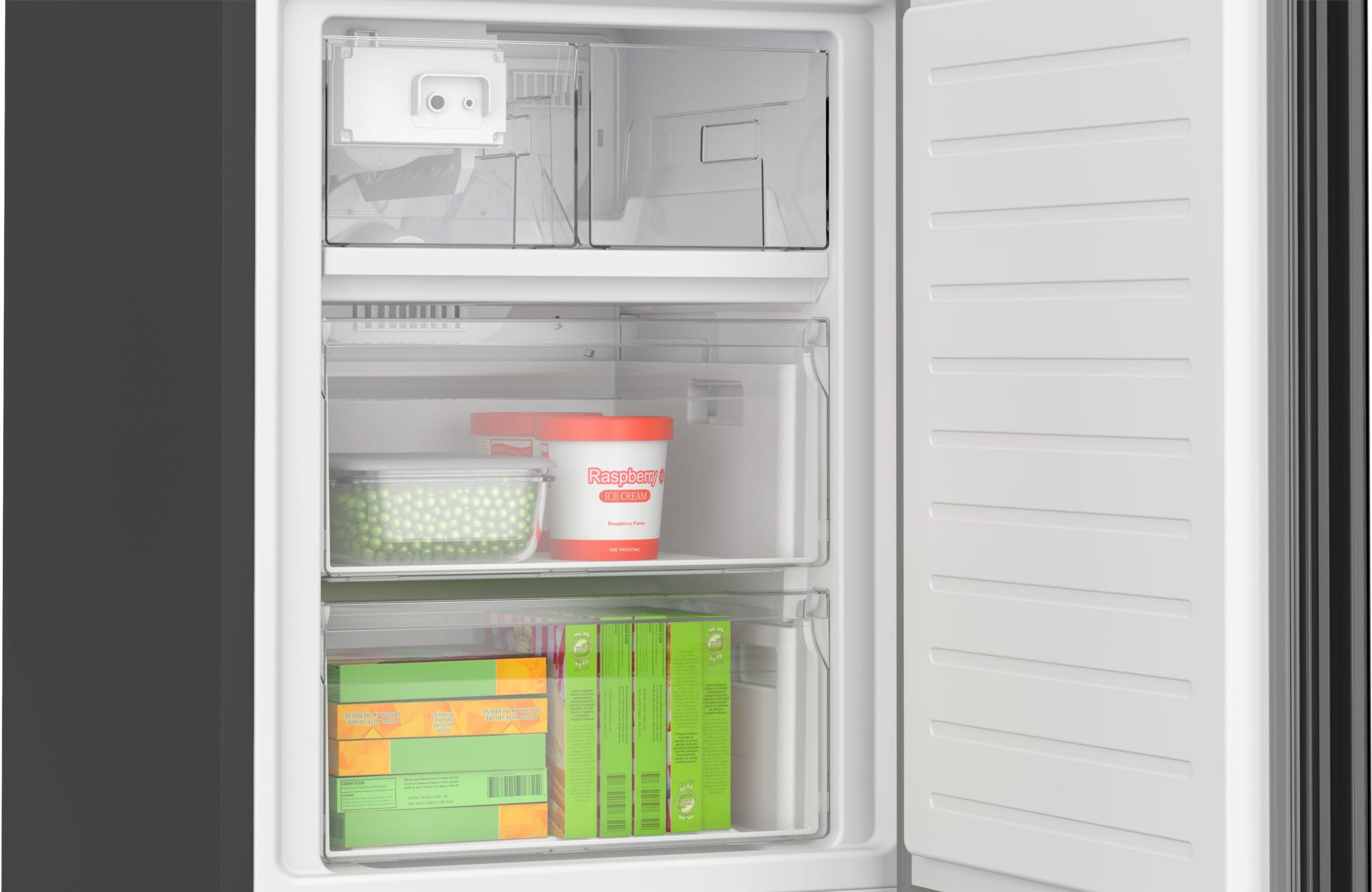 FlexDoor Bins can be moved from the door to the shelves, allowing you to fit taller items on the door