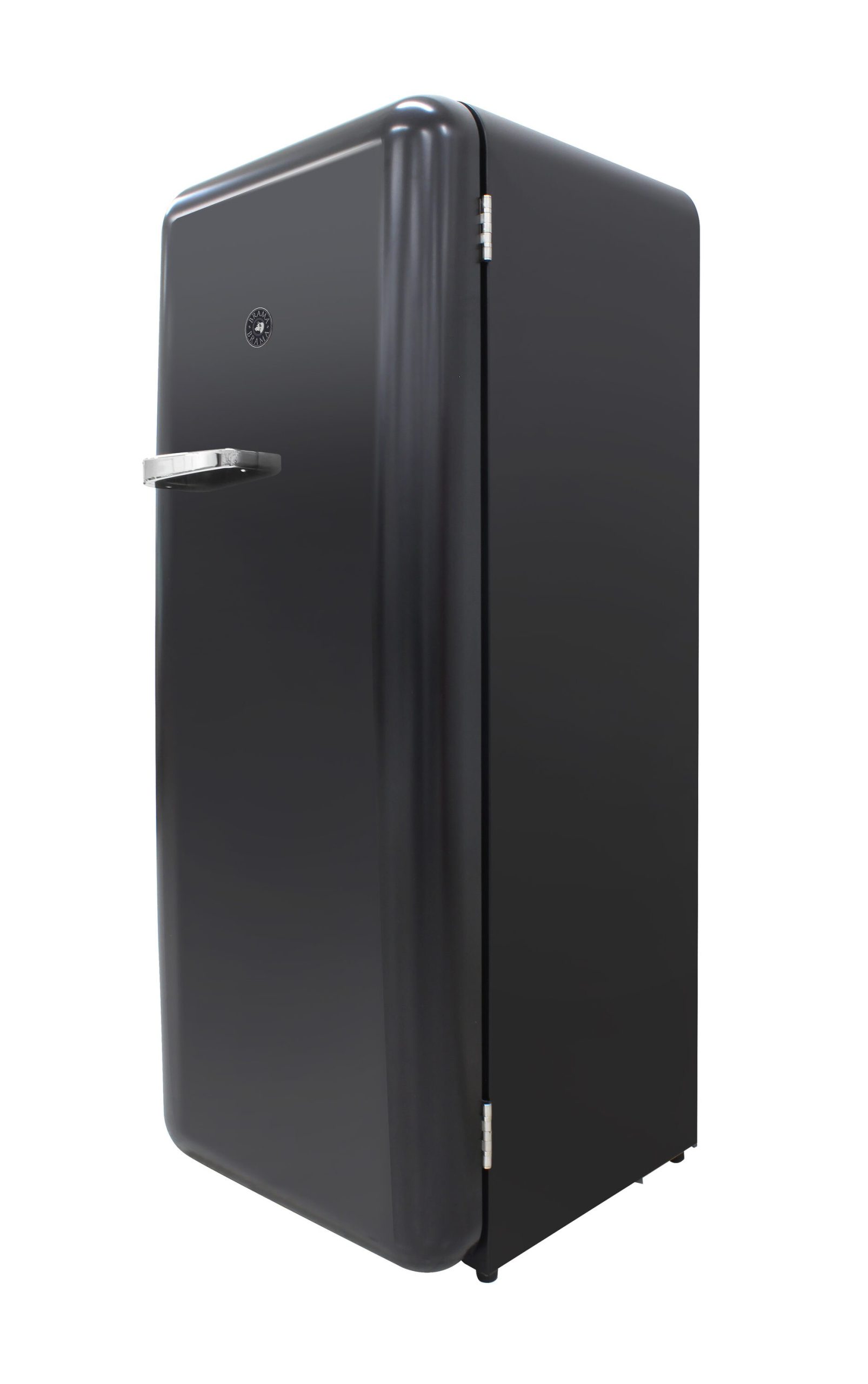 Keep all of your goods at the perfect serving temperature with the Brama Retro Refrigerator. This unit features a top freezer, interior light, open storage with 4 pull-out shelves including one metal wire racking, bottom bulk storage, and 4 rows of small storage behind the door. The black, rounded exterior with solid steel door gives a retro and modern look and makes a perfect addition to to any space.