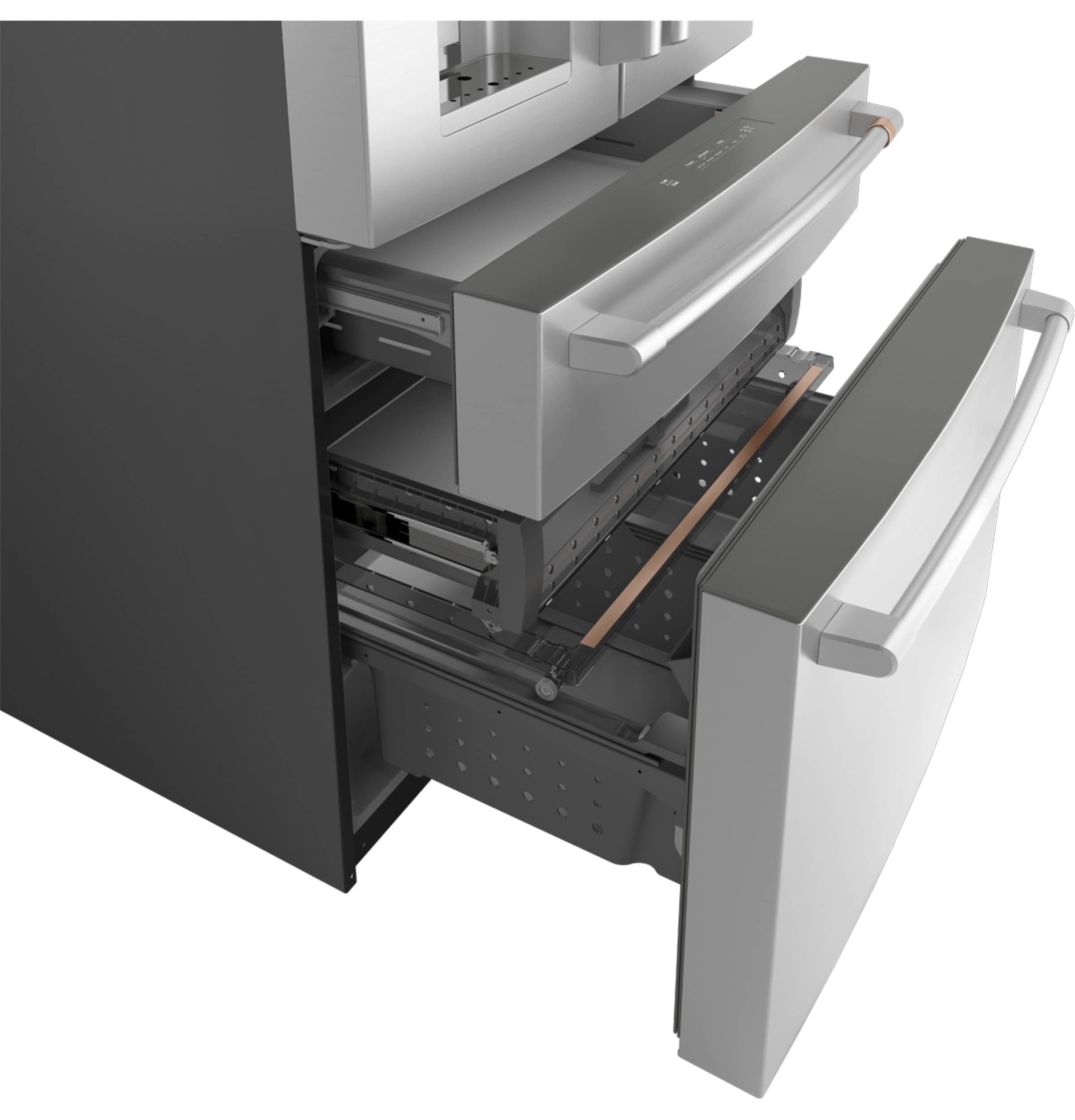 Flatbread Freezer Compartment – use the slim, full-width freezer compartment for flatbread, pizzas and other uniquely shaped frozen items, which is part of a three-level, freezer storage system of sliding shelves and trays