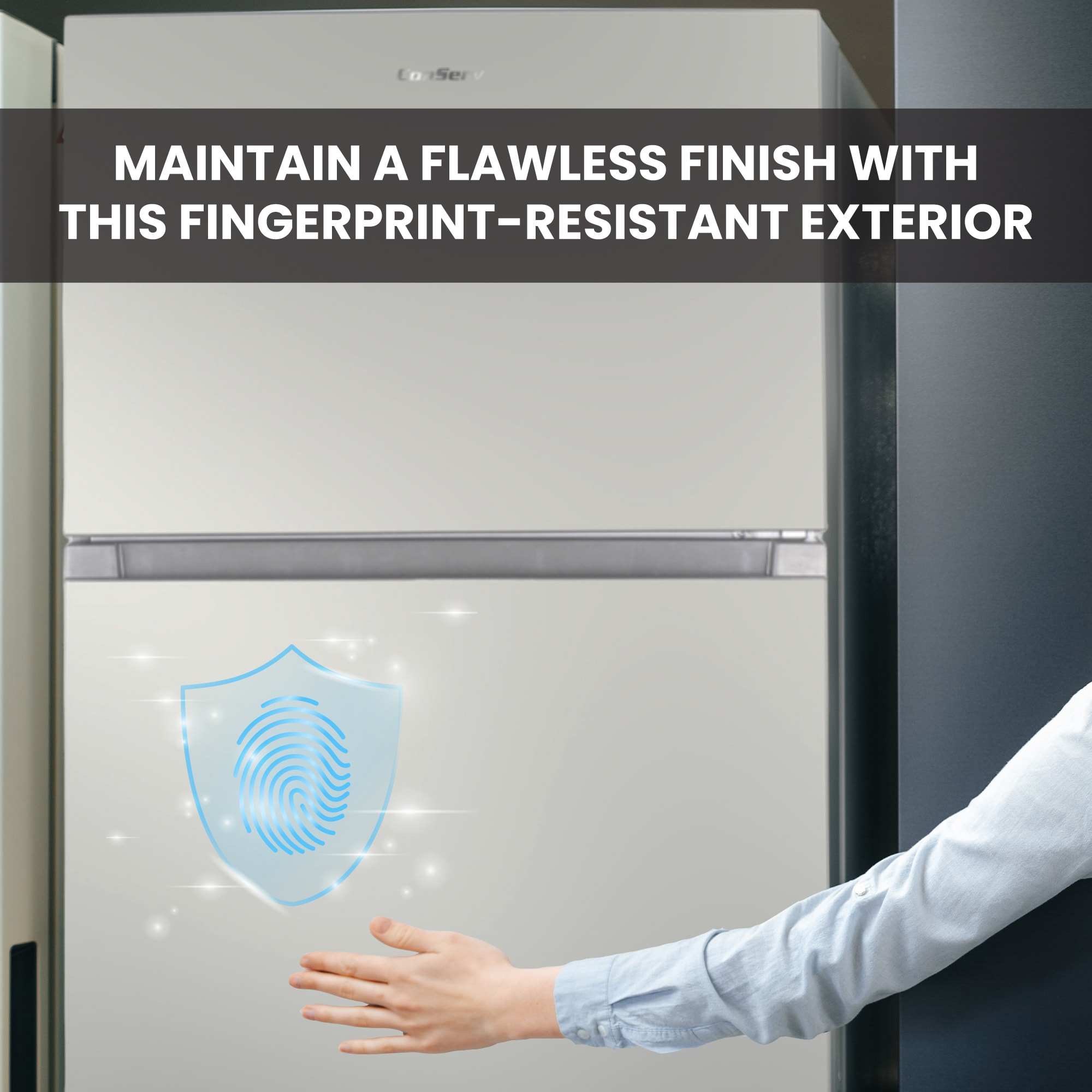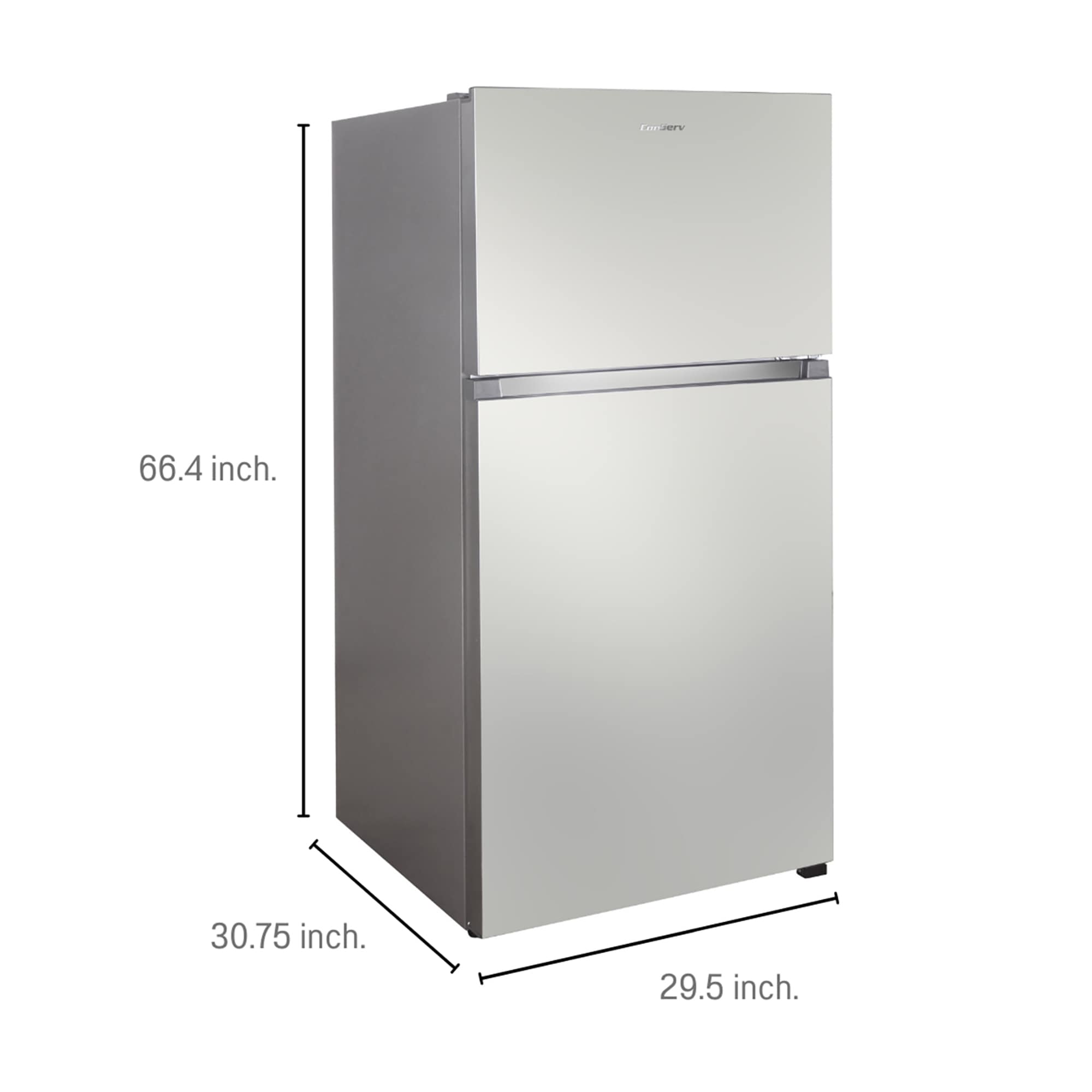 Designed with premium features and top-tier materials, the ConServ TMRI 180 S Top Mount Refrigerator with Ice Maker is the ultimate way to keep food and beverage items at the optimum temperature. This unit provides 18.16 cubic square feet of space, and measures 66.4 x 29.5 x 30.75 (HxWxD in inches). Delight in the convenience of having a pre-installed ice maker and tailored storage for items of all sizes, including gallon storage. The TMRI 180 S comes equipped with two adjustable glass refrigerator shelves, a butter box, four door shelves, and one freezer shelf. Illuminating all stored items is a bright interior light, making it easy to see the contents of the fridge — day or night. Another highly desirable aspect of this model is its energy efficiency. Rated by Energy Star, the TMRI 180 S is powered by an efficient compressor that expertly conserves electricity. Users also appreciate this unit’s other exceptional features, including a fingerprint resistant exterior, adjustable feet, freestanding design, frost free interior, and reversible door.