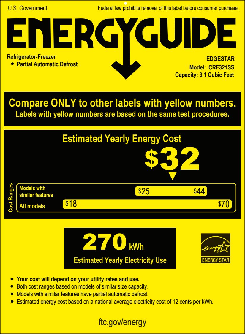 ENERGY STAR rated: this refrigerator is institutionally recognized and certified for energy efficiency, which means a substantial cost savings over the life of the unit