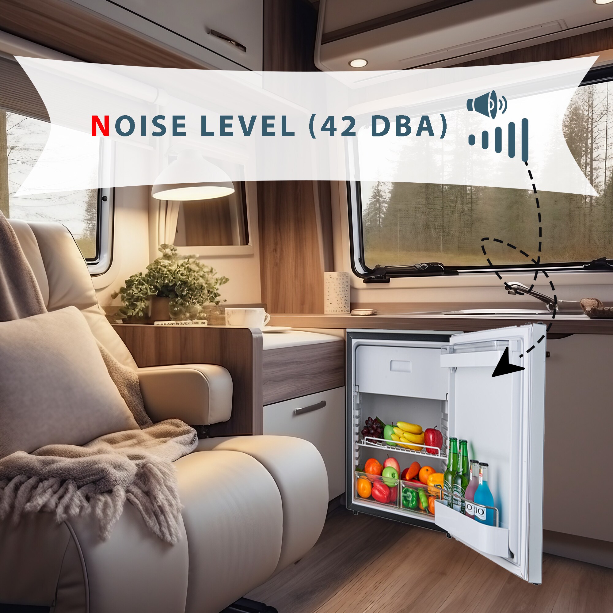 Maintain the perfect chilled environment for all of your perishables while on-the-go with the Equator 2.82 Cubic Feet Brushed Stainless RV Refrigerator Built-In Compressor Cooling (model RF 12-282). Measuring 24.80 x 18.70 x 21.45 (HxWxD in inches), this compact yet spacious fridge offers a built-in configuration for enhanced safety while traveling. The exterior features a sleek, brushed stainless finish, which coordinates well with any interior style. The RF 12-282 operates on DC12V electrical, and has rated power of 48W. Inside the RV Refrigerator, enjoy an impressive 2.82 cubic feet of storage space. Sort and organize all of your beverages and food items using the two included wire shelves, mini crisper drawers, and an in-door bottle storage. The inside temperature can be adjusted between 41°F and 59°F using the electronic temperature control function. Other top features include an energy-efficient compressor, anti-corrosion coating, interior LED light, locking door latch, low voltage protection, and vibration resistance.
