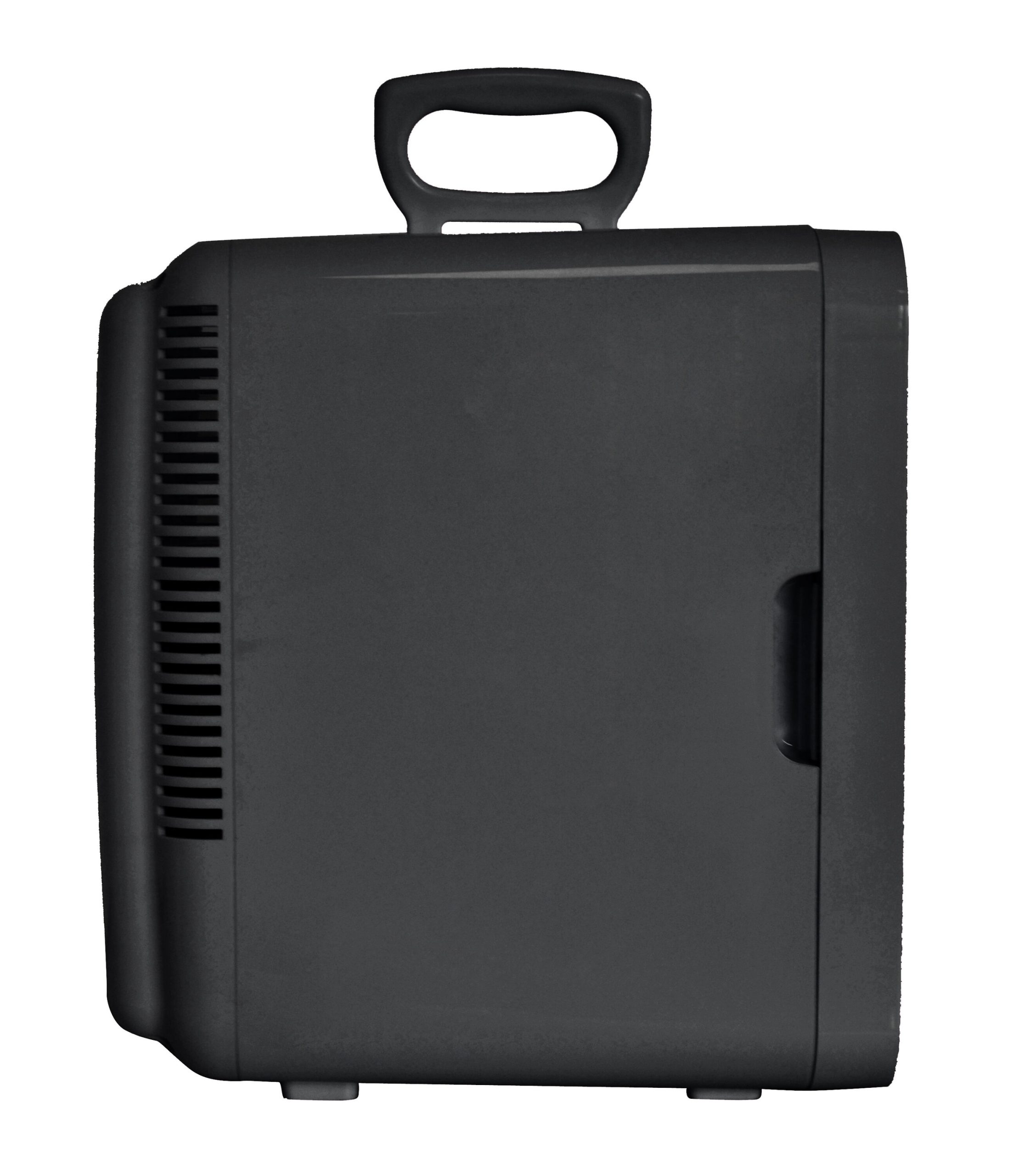 Stores up to 15 cans, powered by 110V (AC) wall outlet, cools up to 20 degrees F below ambient room temperature and also plugs into a 12V car adapter or home outlet.