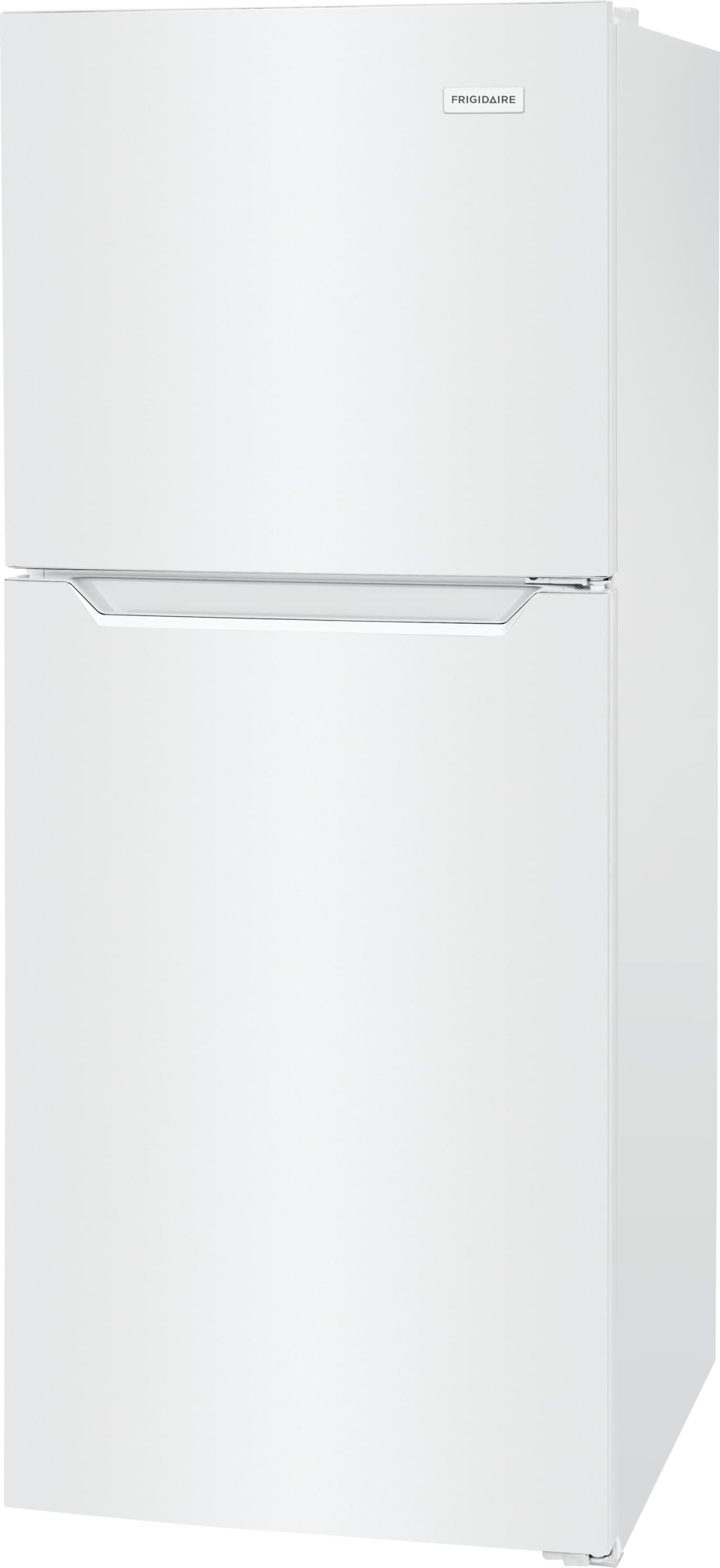 The Frigidaire 11.6 cu. Ft. apartment-size top freezer refrigerator has adjustable shelving and humidity control crisper drawers for storing fruits and vegetables. It is also equipped with bright lighting to keep contents clearly visible. E-star certification saves on energy costs and reversible doors and rear rollers accommodate your installation needs.