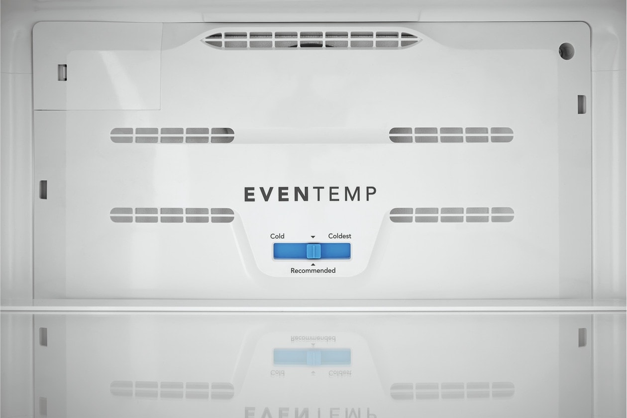 The Frigidaire 20 cubic foot top freezer refrigerator fits in the same sized cutout as a traditional 18 cu. ft. model. This refrigerator features the EvenTemp™ Cooling System, precise temperature control which keeps food at one ideal temperature. Spacious interior storage options include a full-width deli drawer, generous door bins, and a full-width glass freezer shelf.