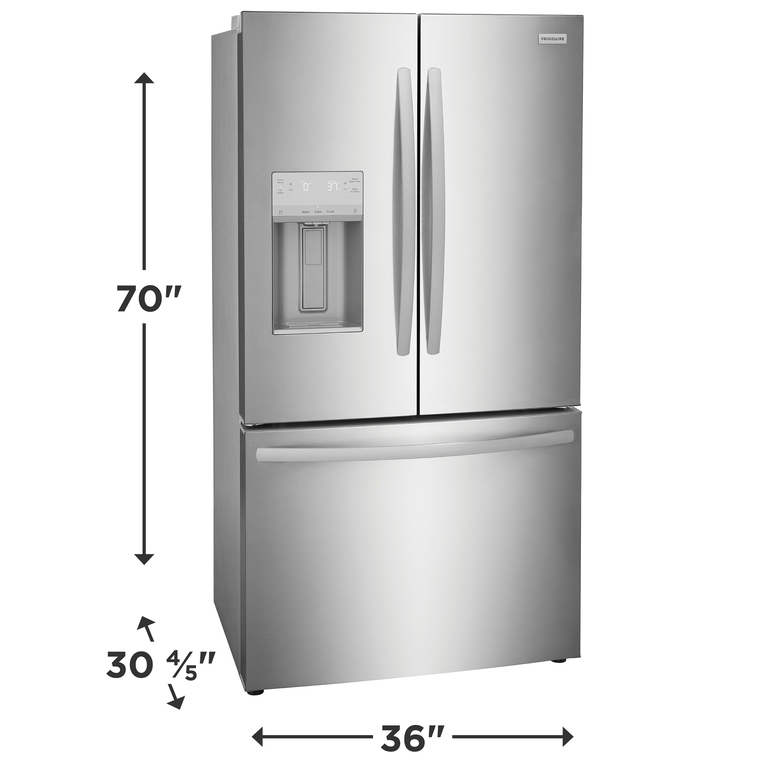 This Frigidaire French door refrigerator helps keep fruits and vegetables fresh longer with CrispSeal® crispers which blocks dry air from entering your crisper. Easily stay organized with a full width deli drawer and Large door bin storage.