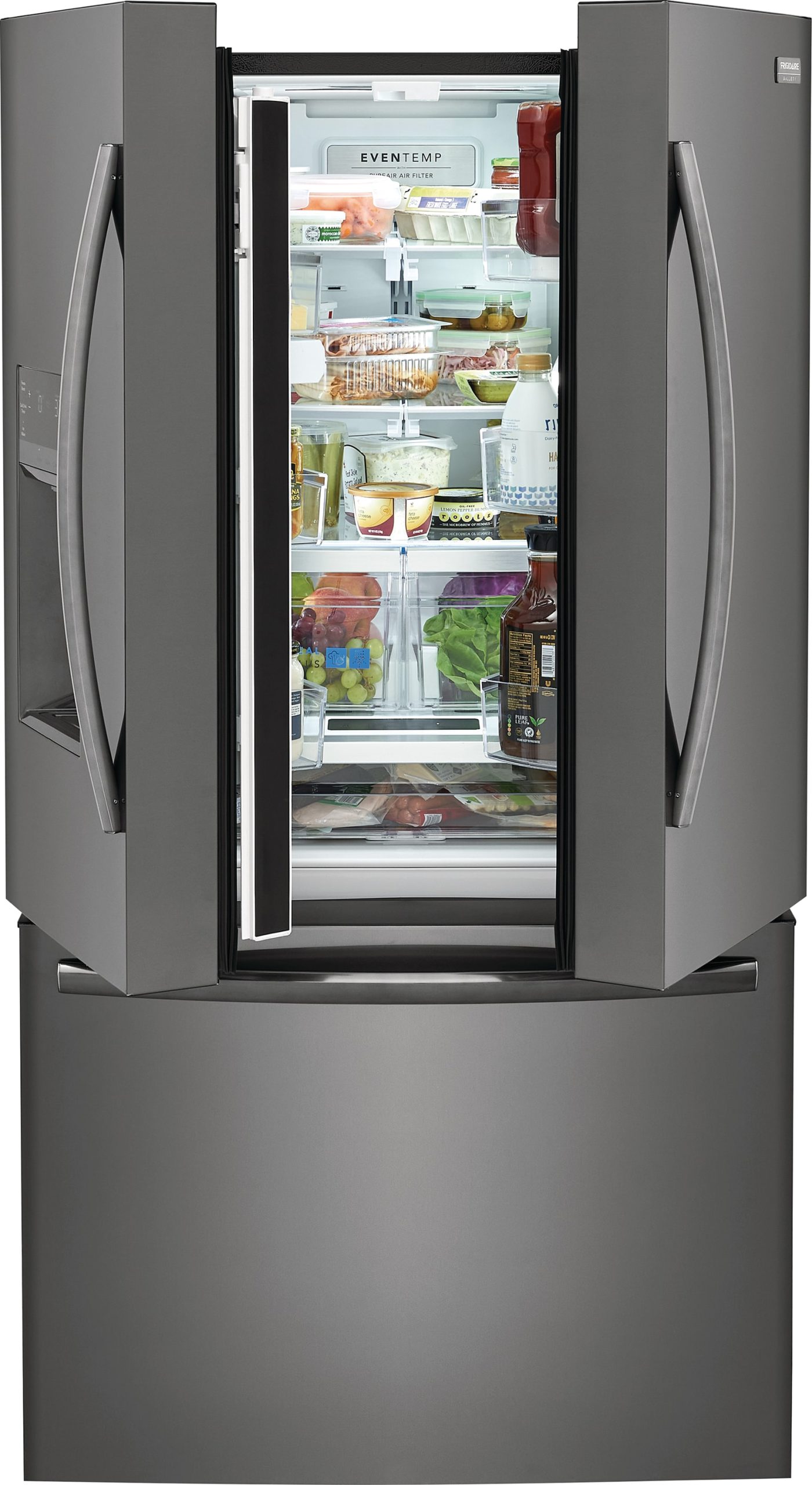 This Frigidaire Gallery French door refrigerator offers a freshness system that maintains the taste and texture of even your most delicate foods. Help prevent produce from spoiling: advanced CrispSeal® Plus Crispers with auto humidity technology automatically removes excess moisture plus an added ethylene filter reduces the gas emitted by many fruits and vegetables that causes spoiling. Get more storage out of your refrigerator with clever organization solutions that maximize usable space, including in-door condiment storage, slide under shelf and accessory railing system. Keep your food fresh in our adjustable temperature drawer, with three temperature setting perfect for everything from yogurt and party platters to meat and chilled drinks.